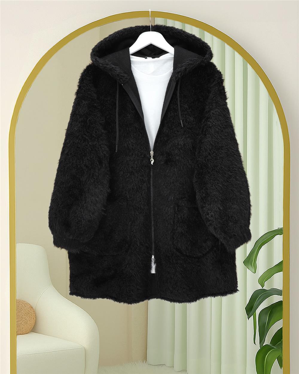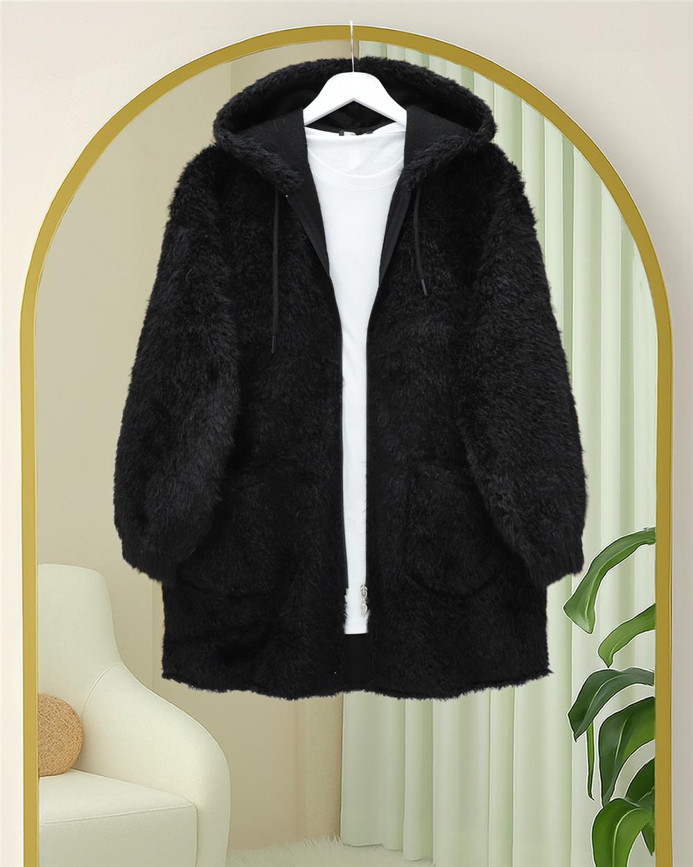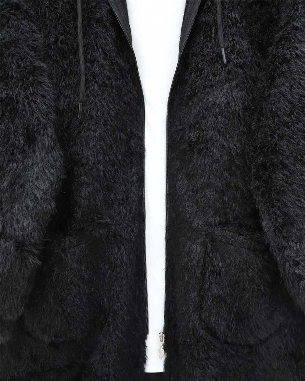 Kapşonlu Cepli Fermuarlı Sakallı Kap -Siyah (398-55006-R01)