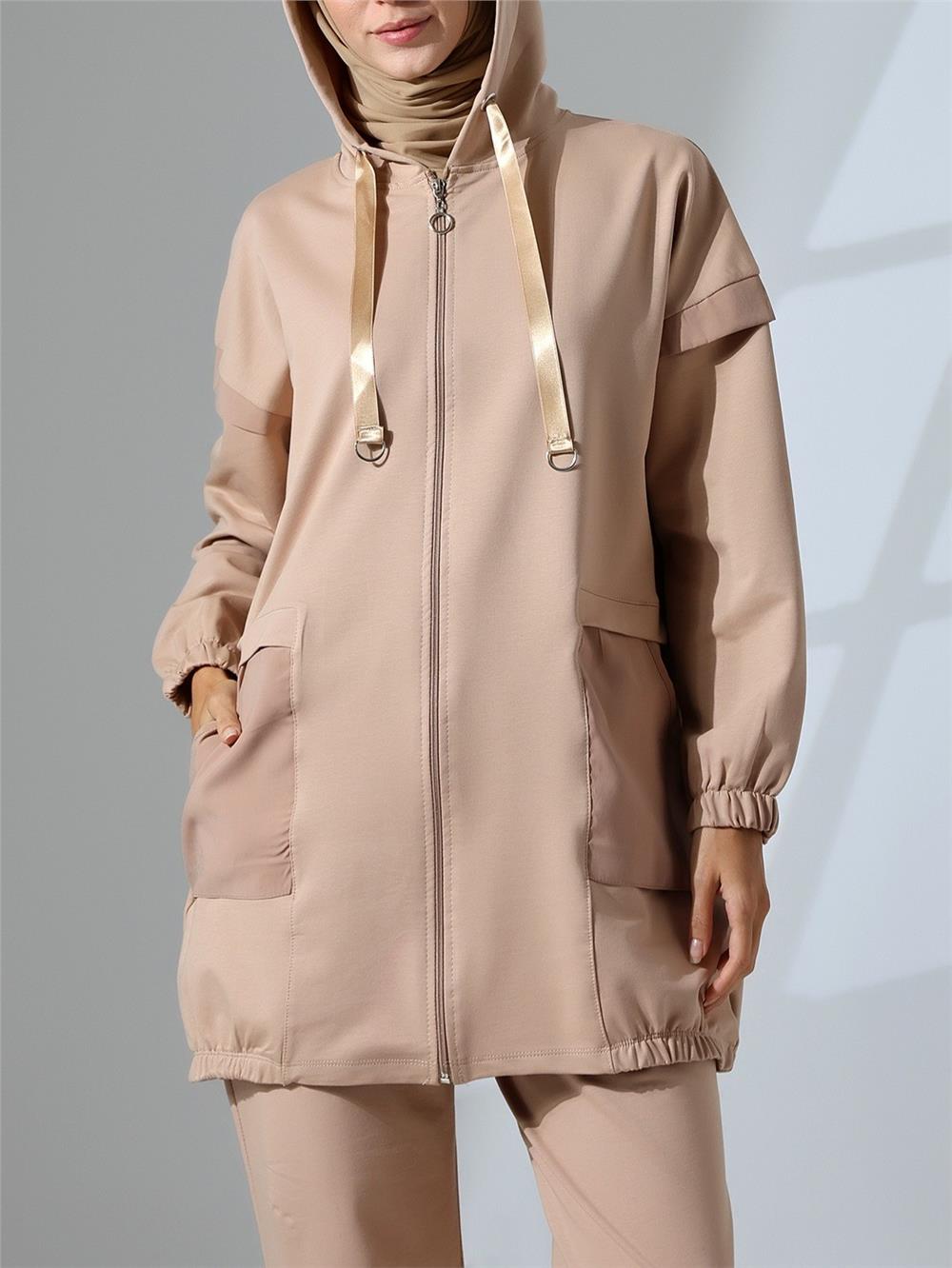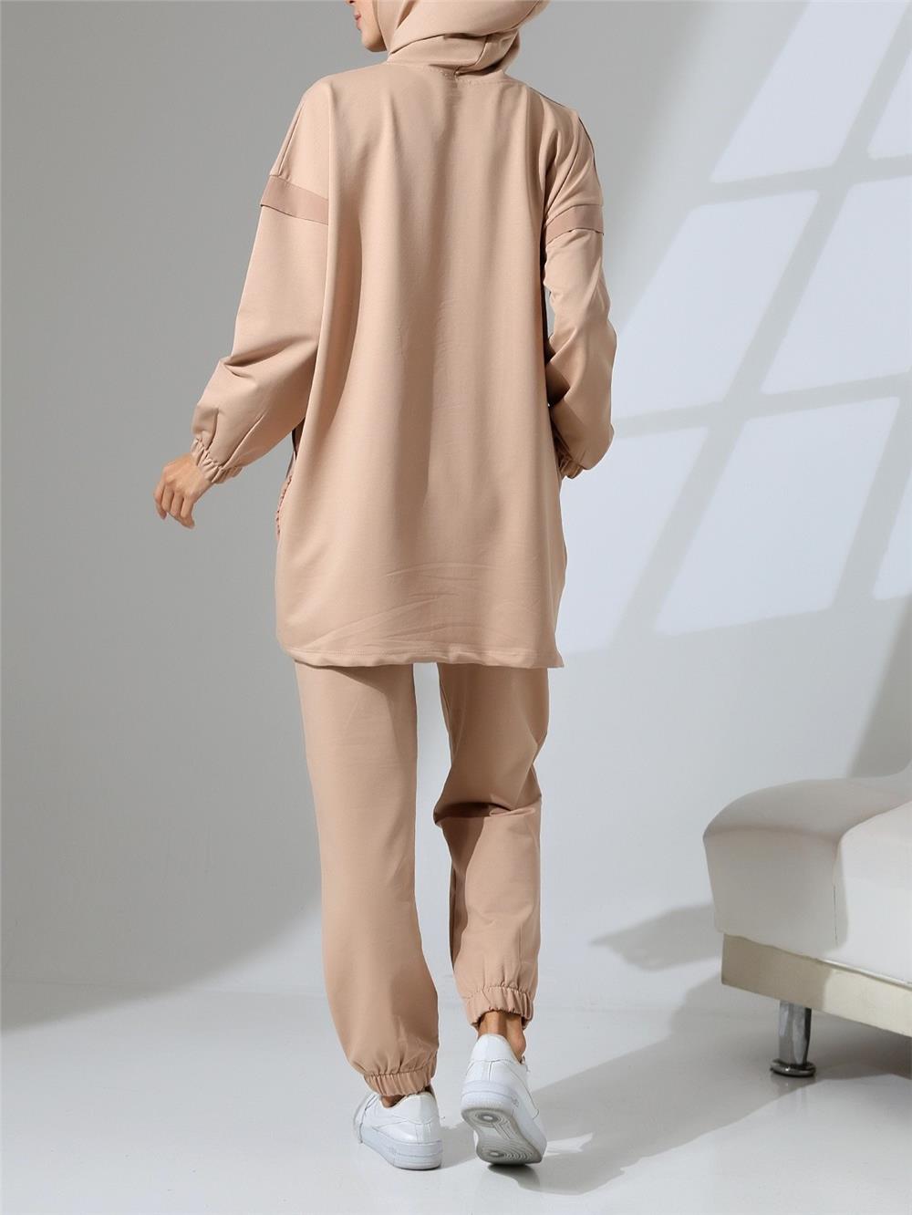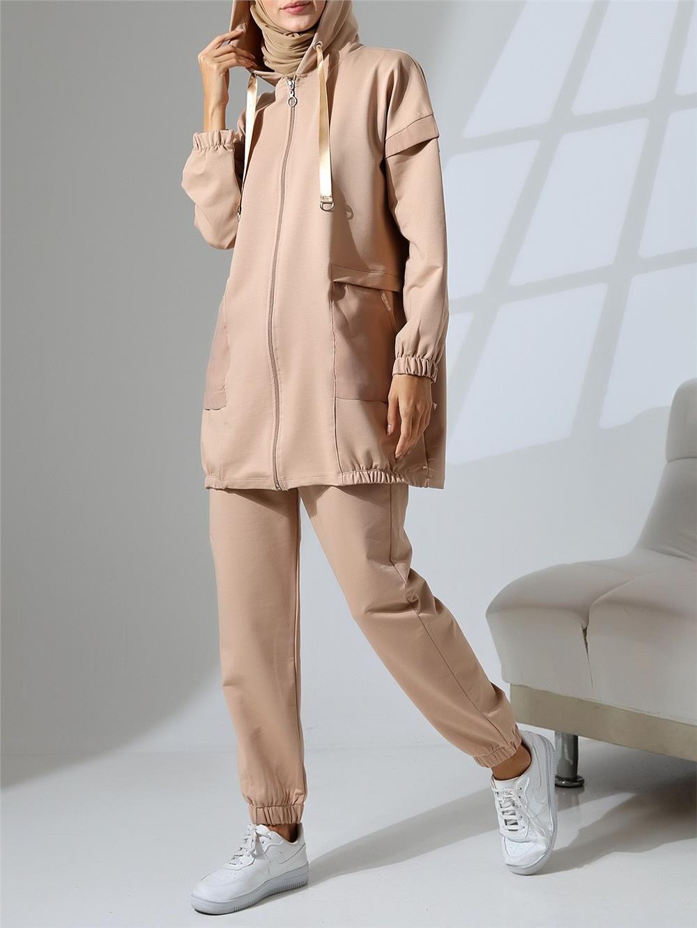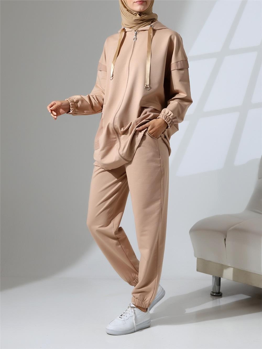 Kapşonlu Cepli Kolu Lastikli Penye Takım -Vizon (403-2007-R23)