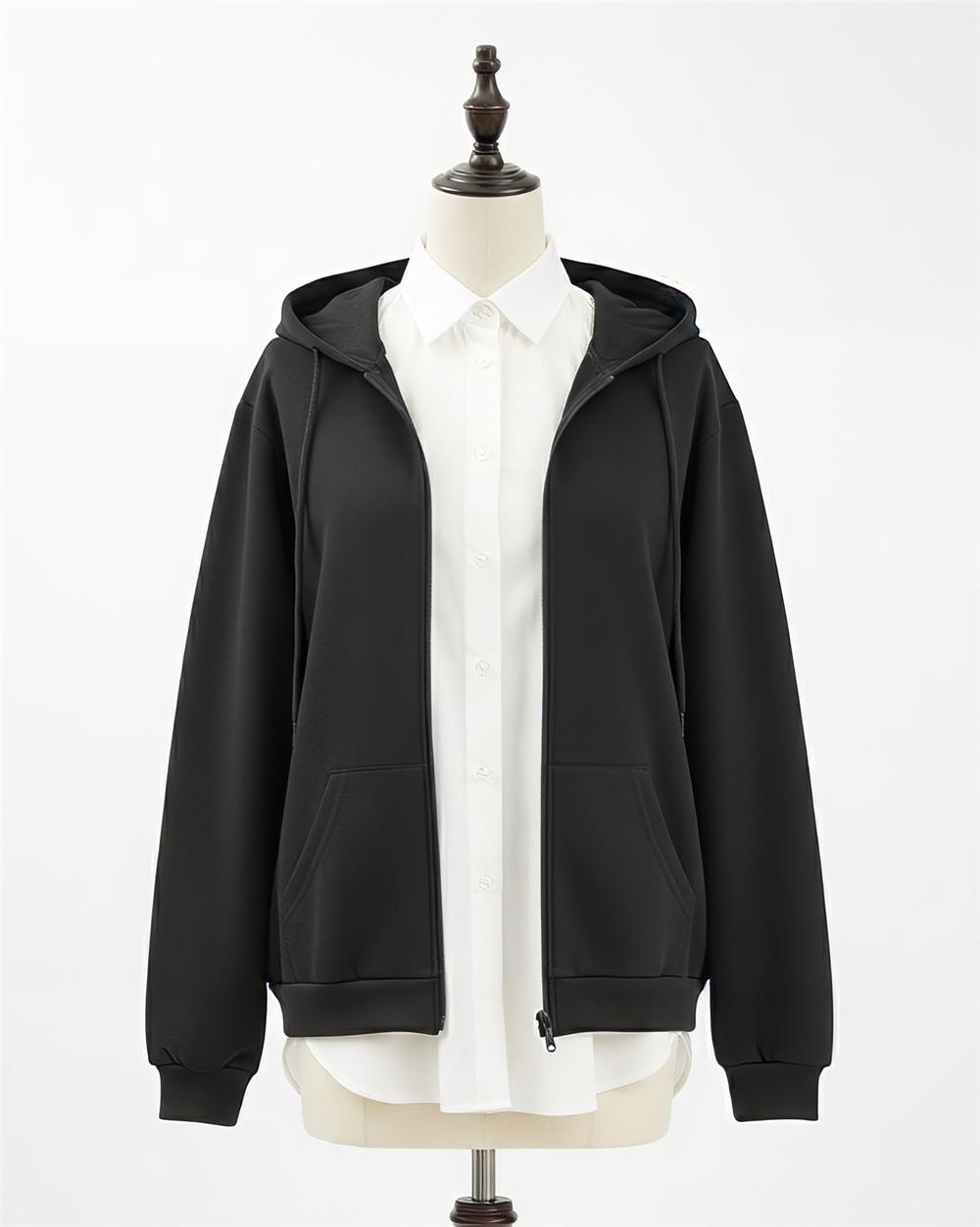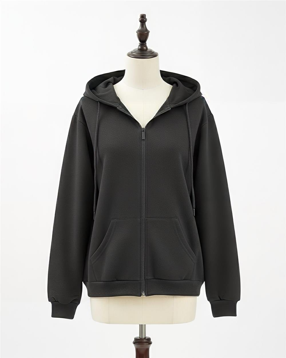 Kapşonlu Fermuarlı Cepli Penye Sweat -Siyah (104-3293-R01)