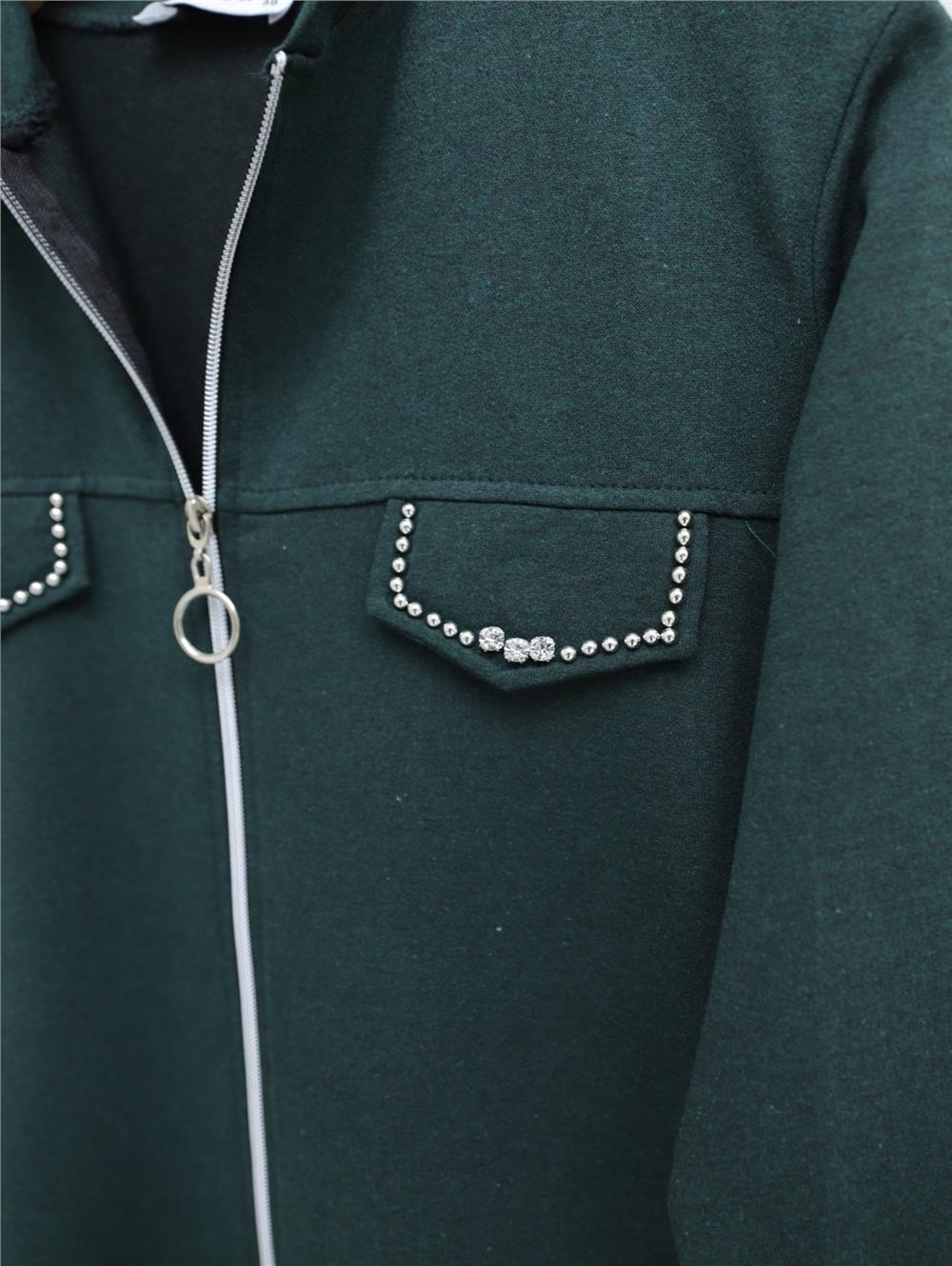 Hooded, Zippered, Stone Detailed Regenerated Suit - Emerald (332-03058-R17)