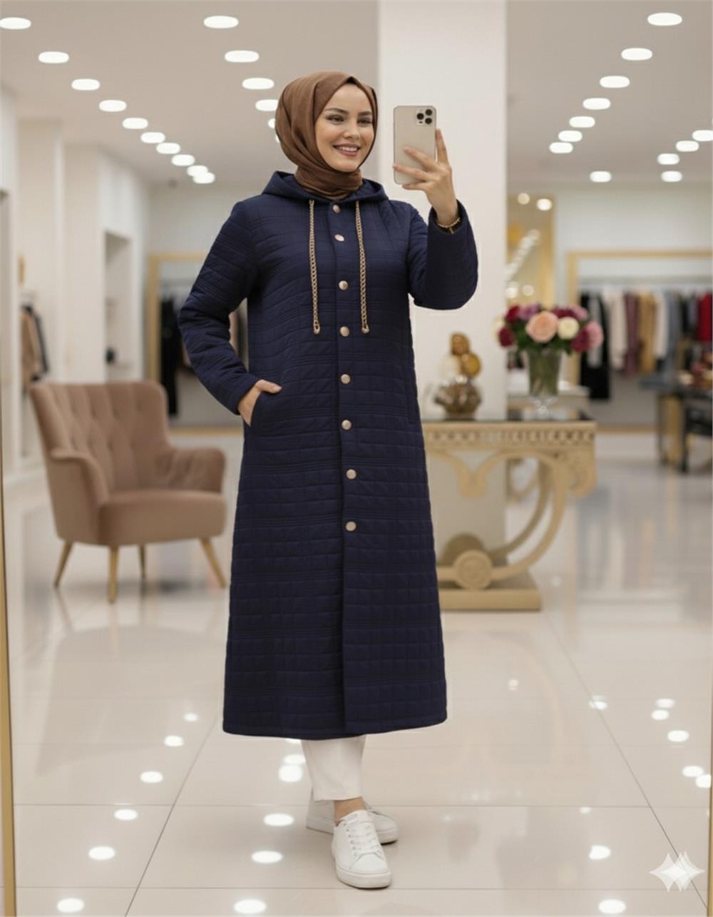 Kapşonlu Önü Düğmeli Zincir Detaylı Kapitone Kap -Laci (332-71235-R03)