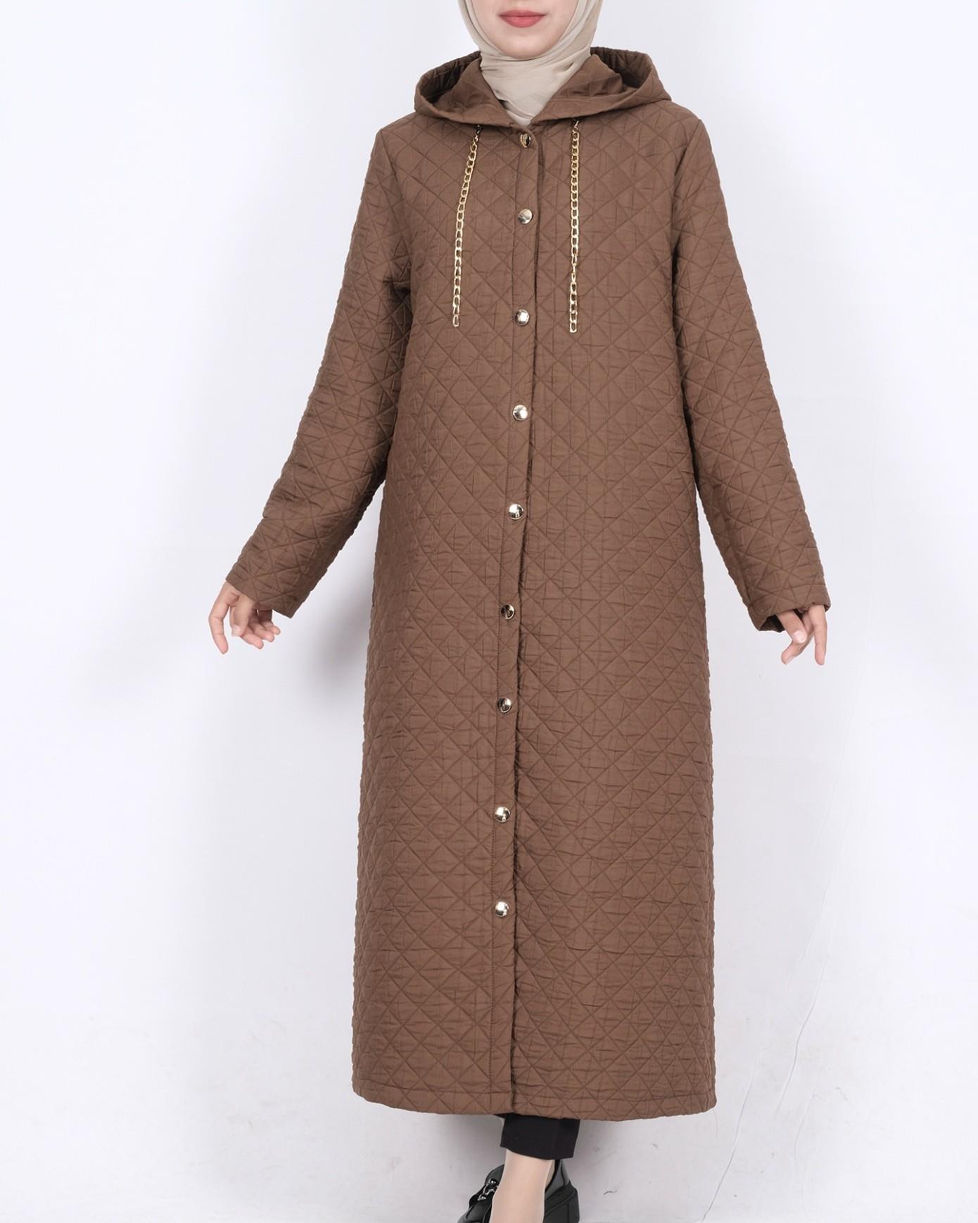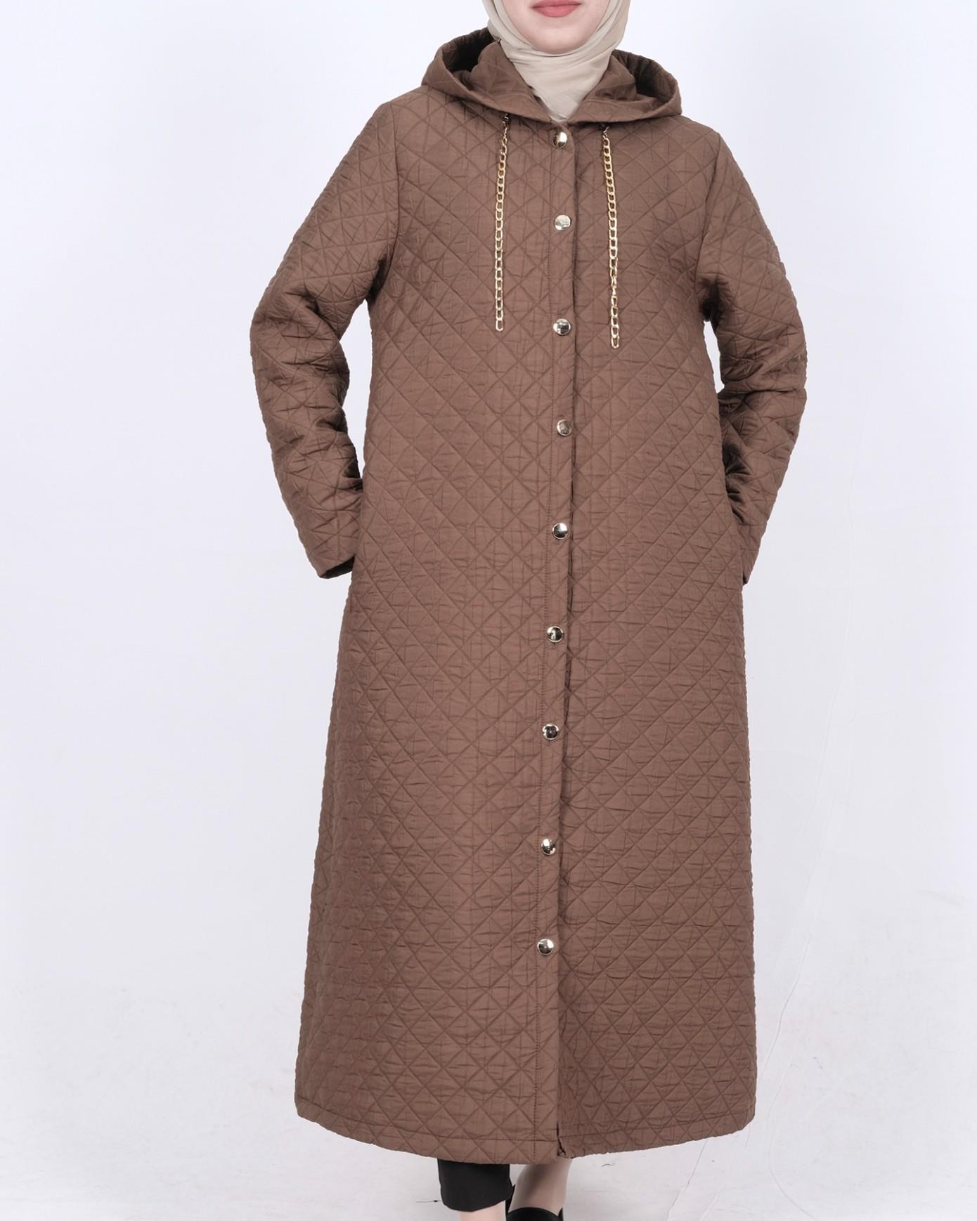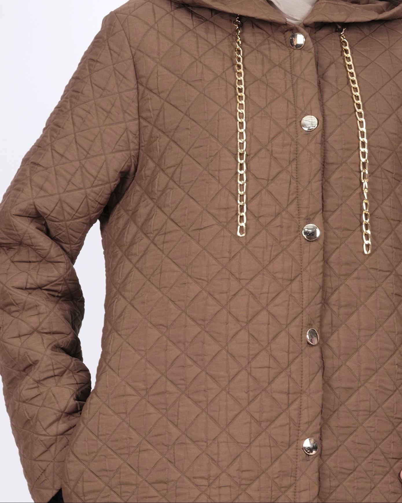 Kapşonlu Zincir Detaylı Düğmeli Kapitone Kap -Kahve (111-50771-R15)