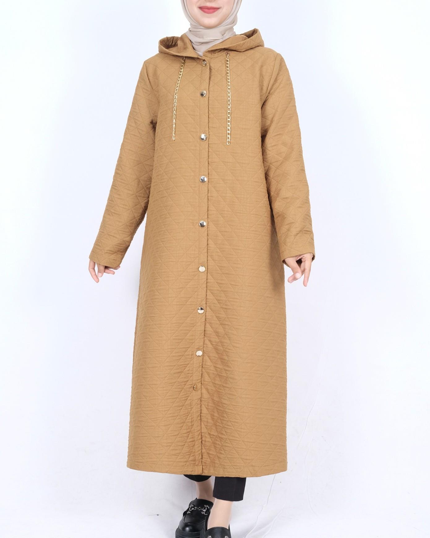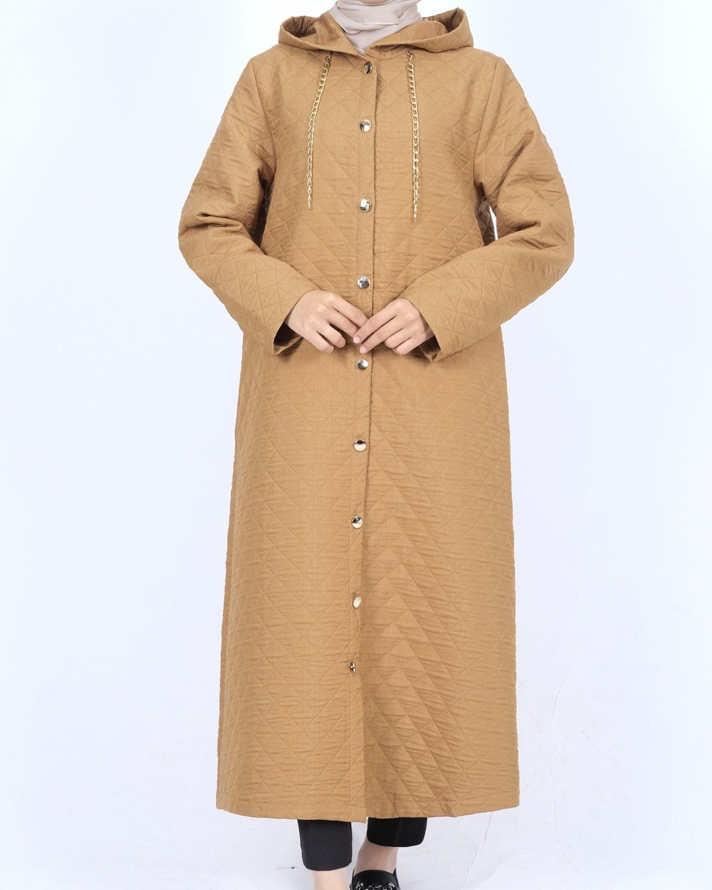 Kapşonlu Zincir Detaylı Düğmeli Kapitone Kap -Tarçın (111-50771-R45)