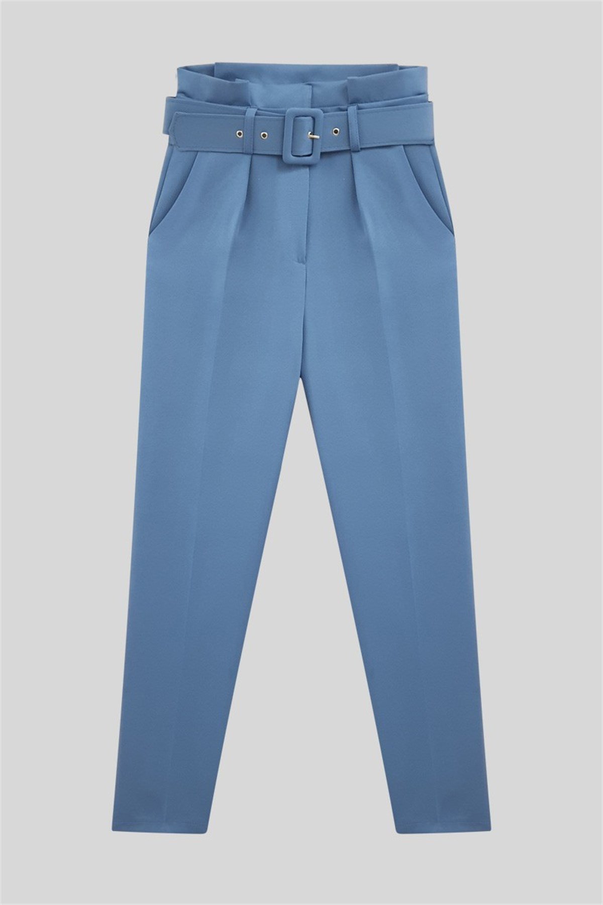 Kemerli Kumaş Pantolon -Blue (138-6464-R31)