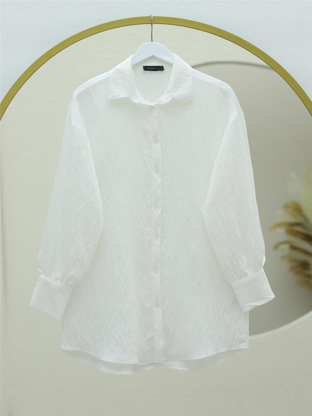 Klasik Yaka Boydan Düğmeli Oval Kesim Gömlek -Beyaz (138-5963-R02)