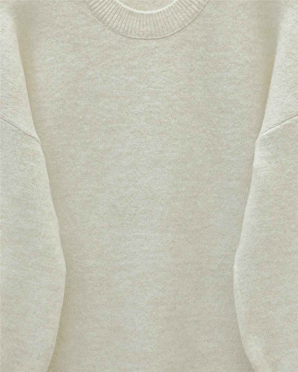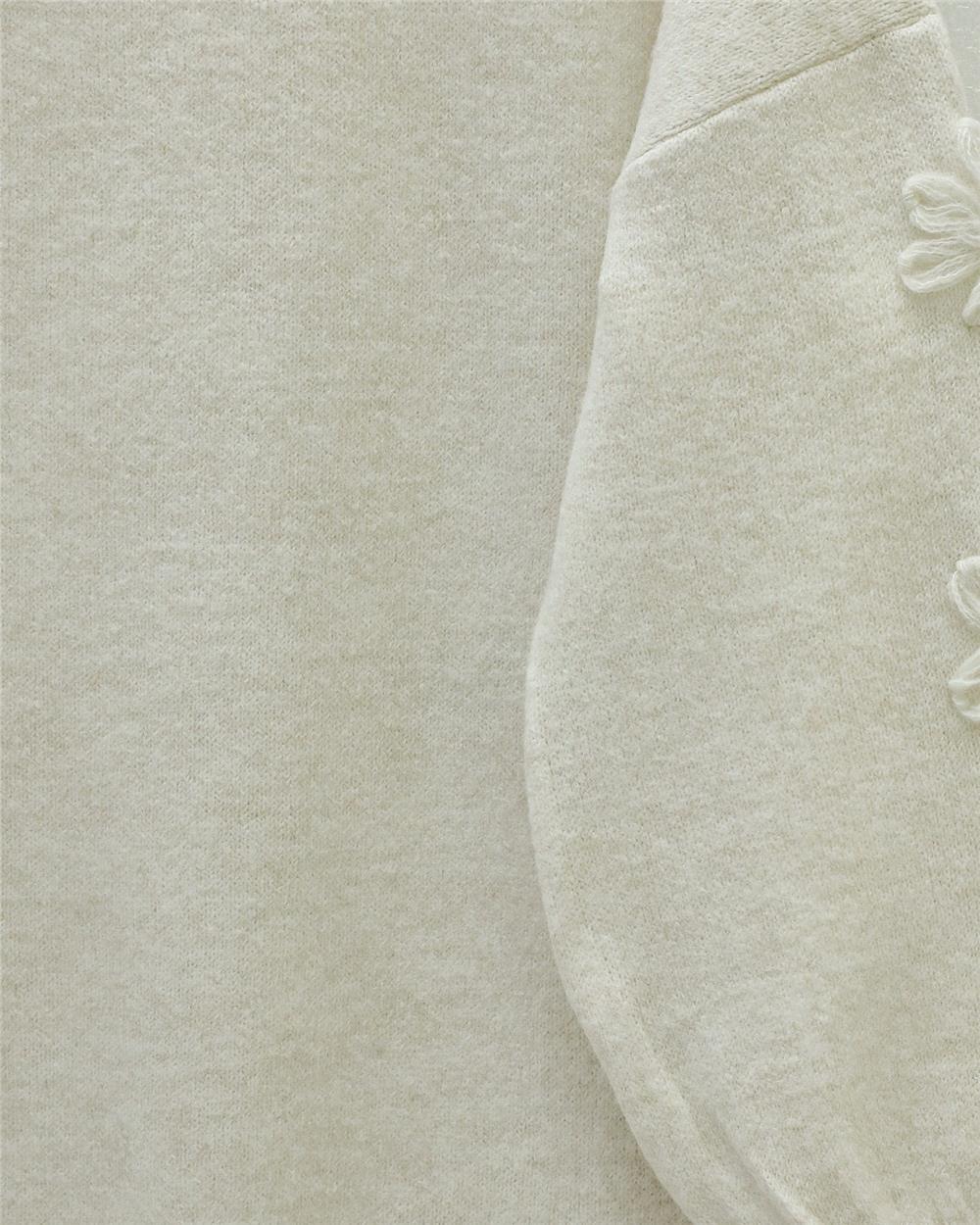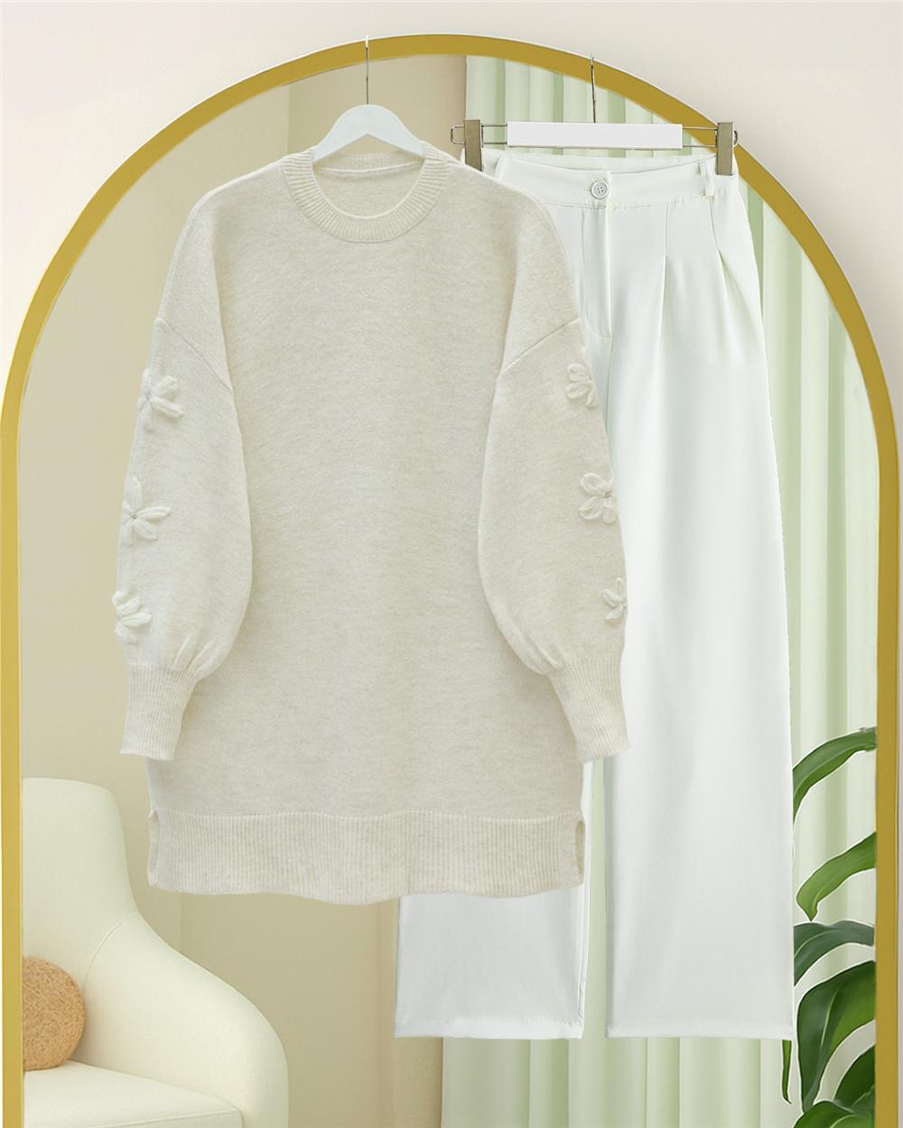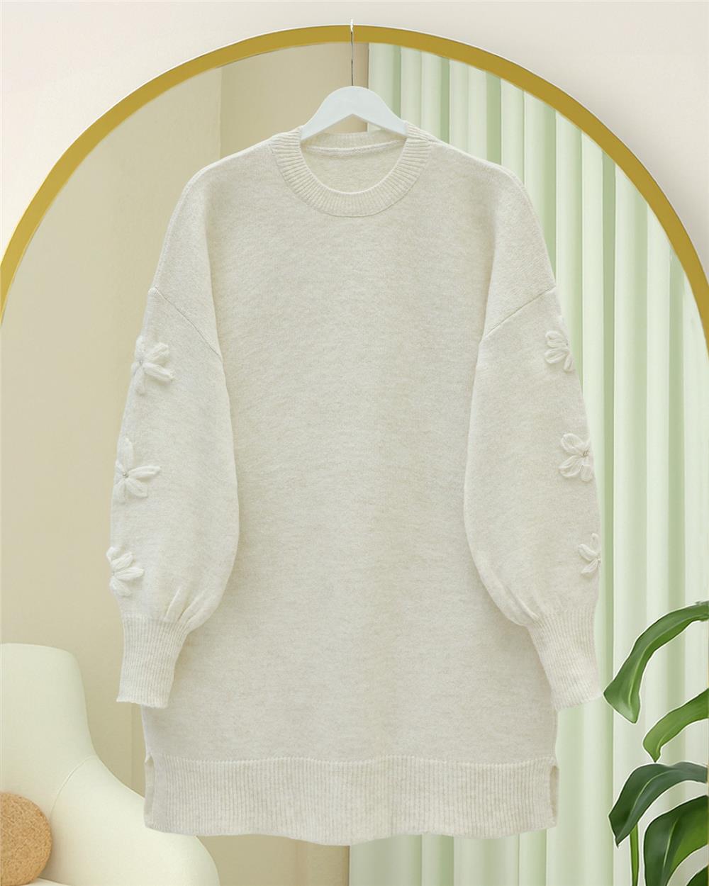 Kolu Çiçek Detaylı Yuvarlak Yaka Yumoş Triko Kazak -Ekru (295-4526-R07)
