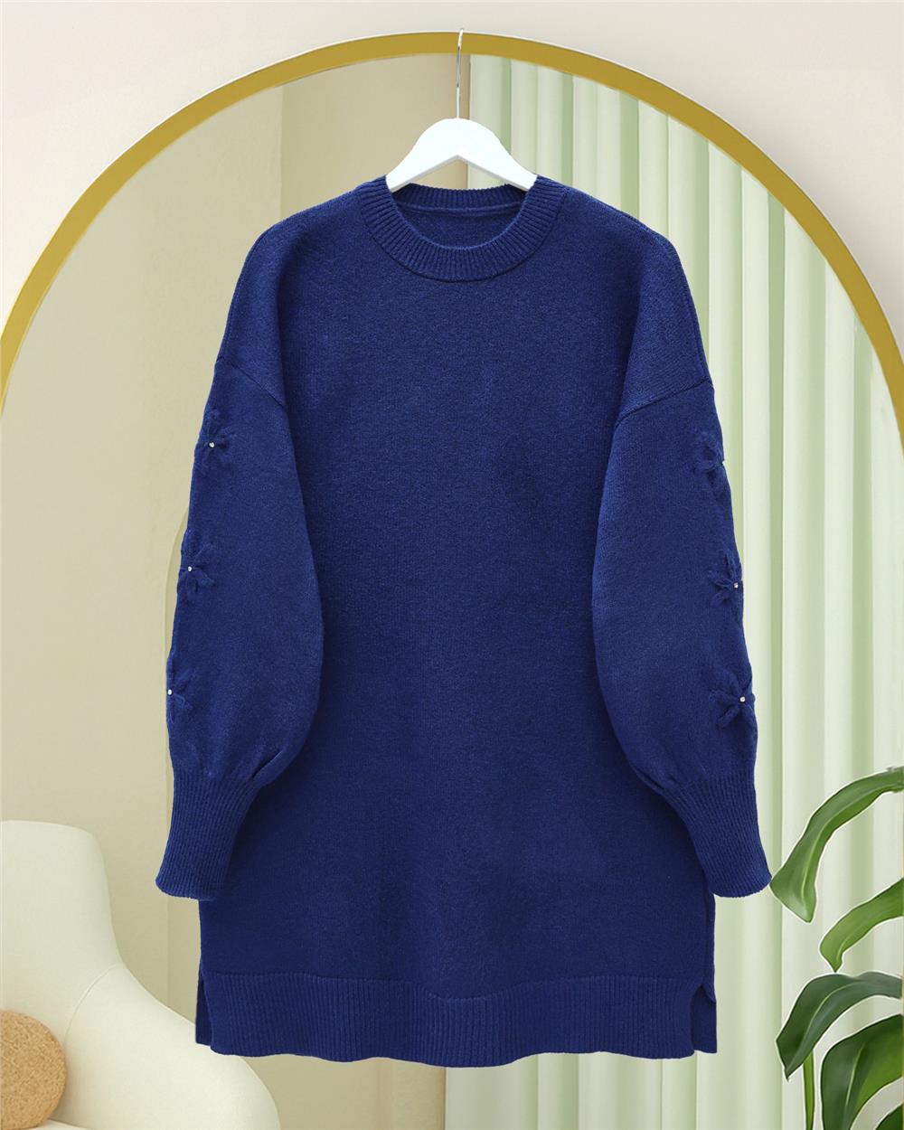 Kolu Çiçek Detaylı Yuvarlak Yaka Yumoş Triko Kazak -Laci (295-4526-R03)