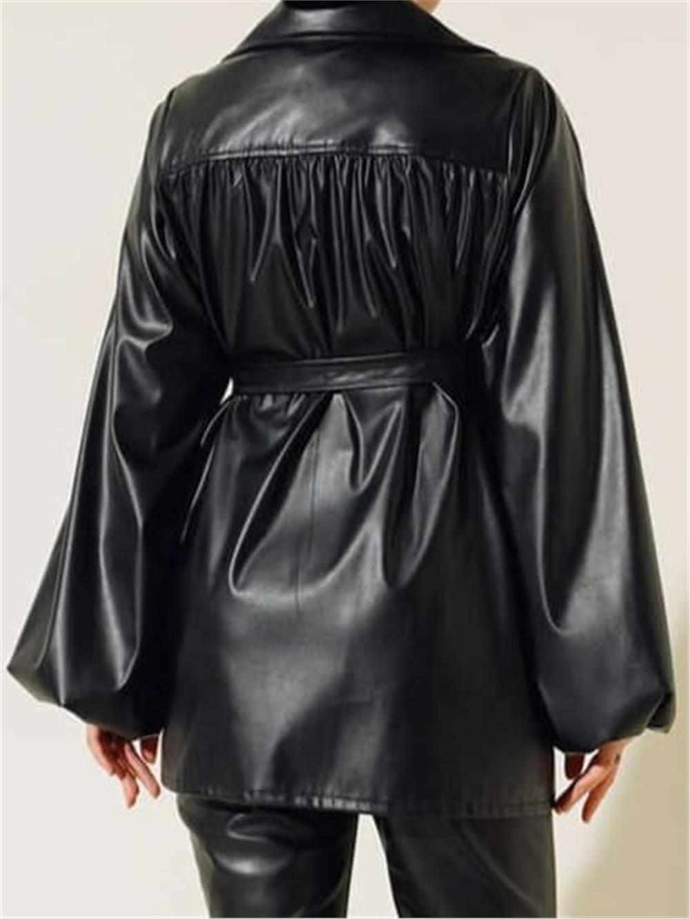 Balloon Sleeve Leather Jacket with Elastic Sleeves - Black (253-12867-R01)