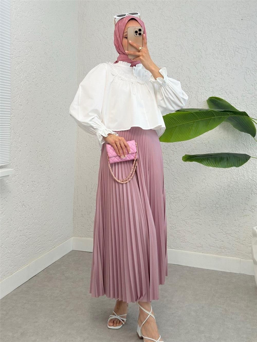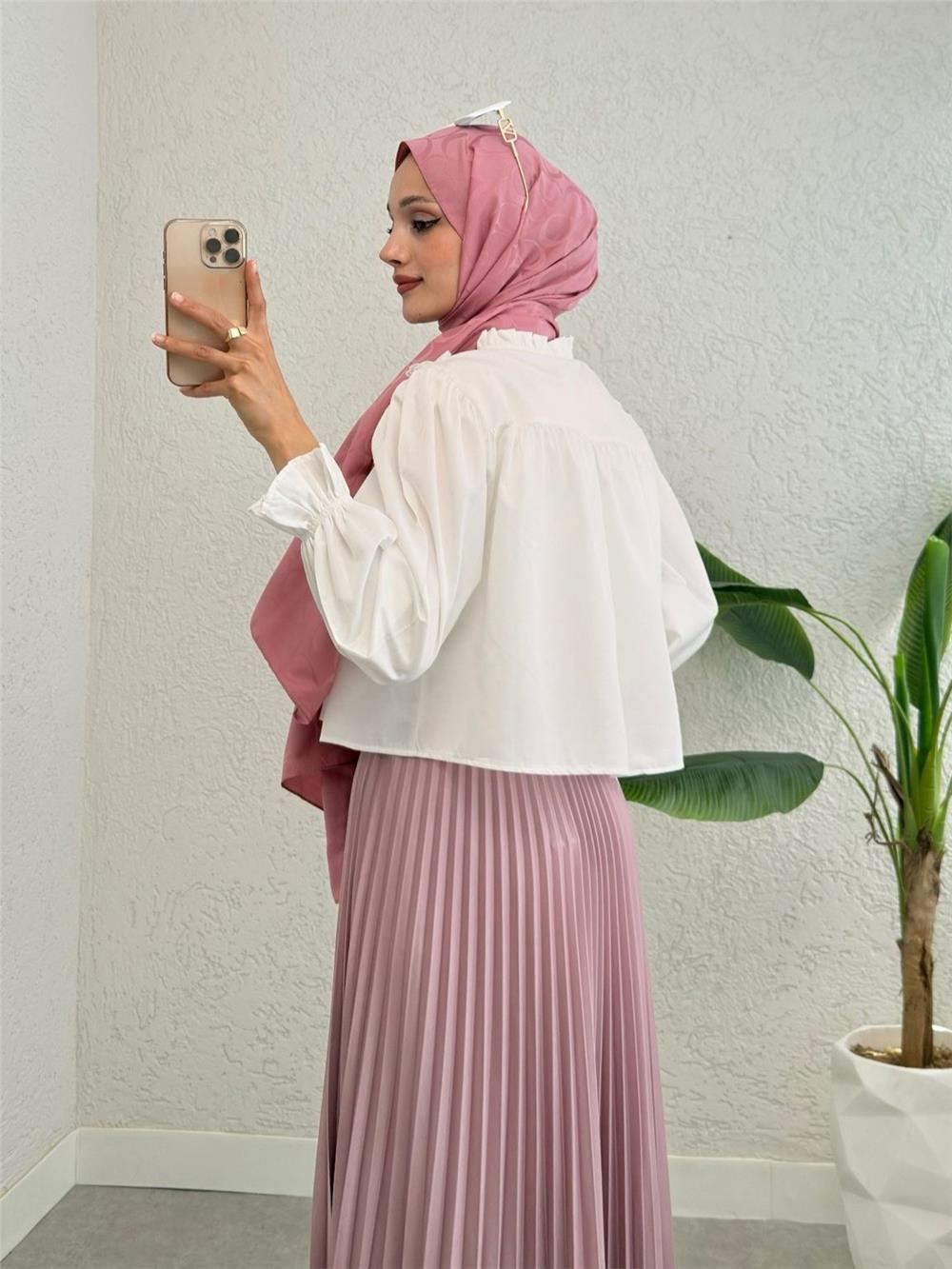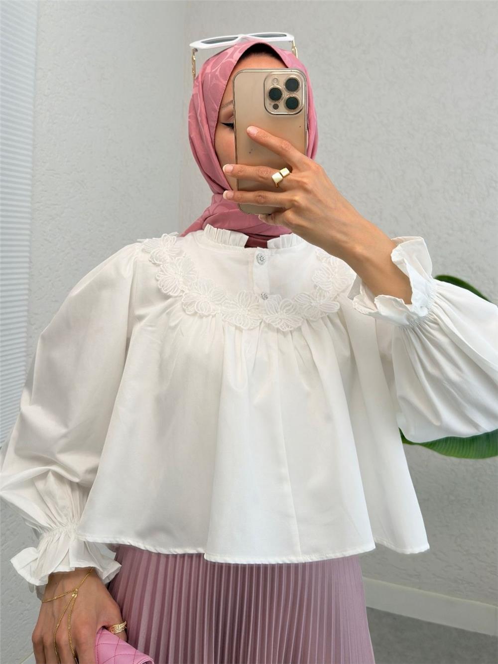Kolu Lastikli Çiçek Detaylı Gömlek -Beyaz (307-2317-R02)