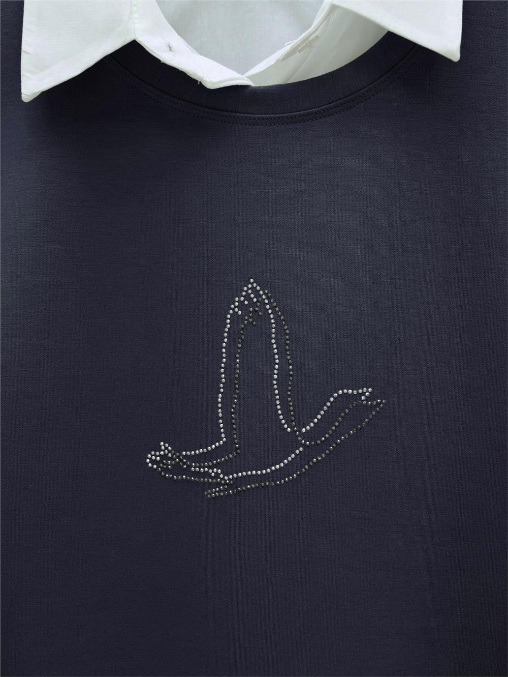 Kuş Desenli Taşlı Osyho Tunik -Füme (104-1420-R18)