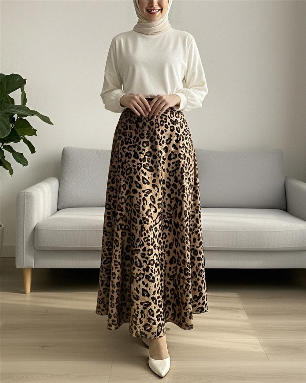 Leopar Desenli Scuba Etek -Vizon (349-7098-R23)