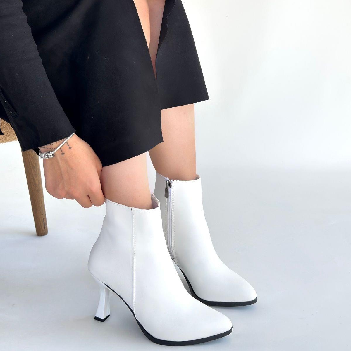 Mişha Beyaz Cilt Topuklu Bot (ILK-KDN-KBT-265843)