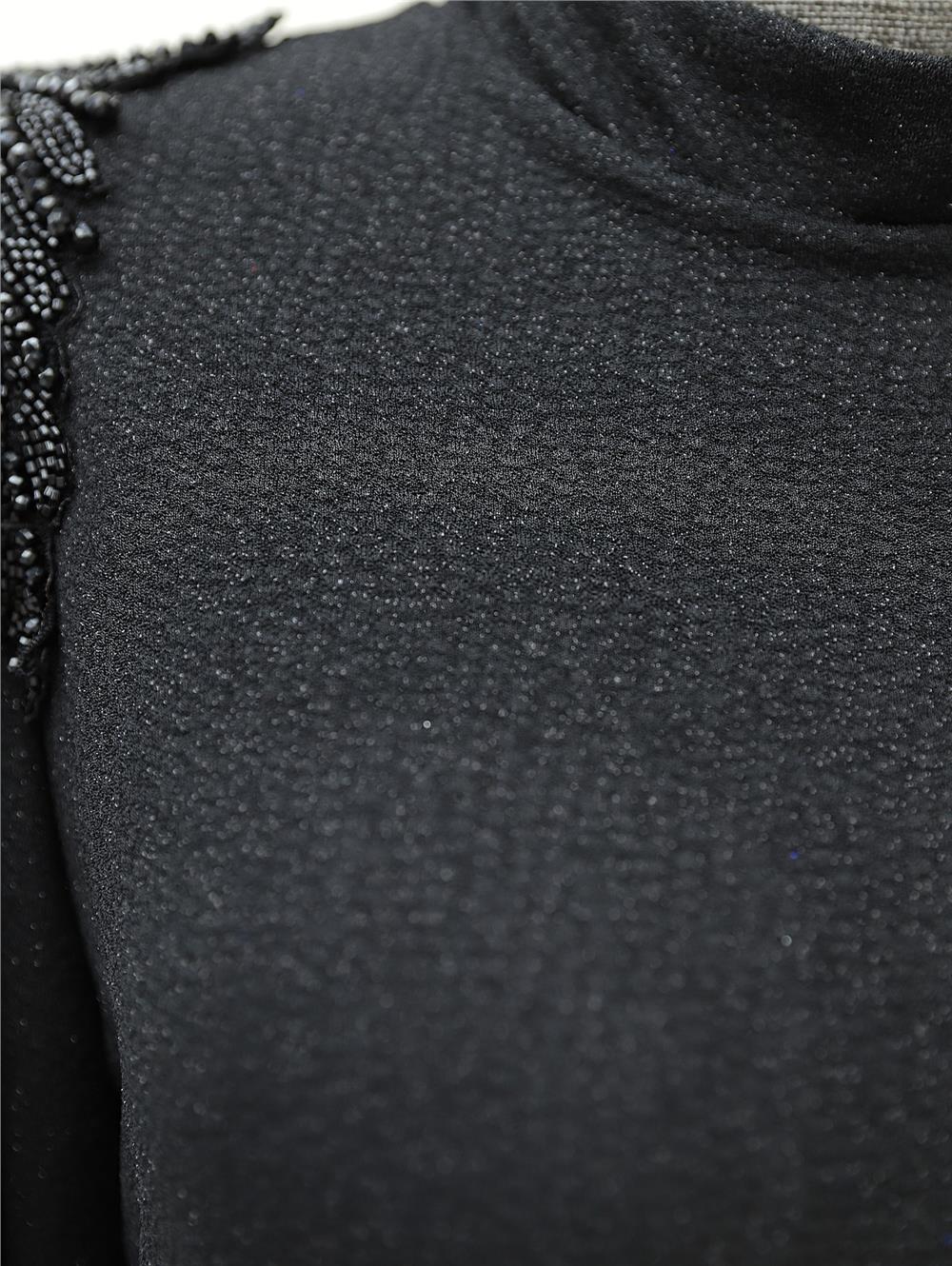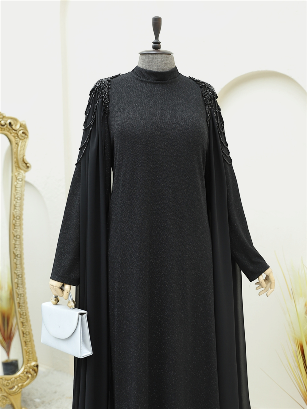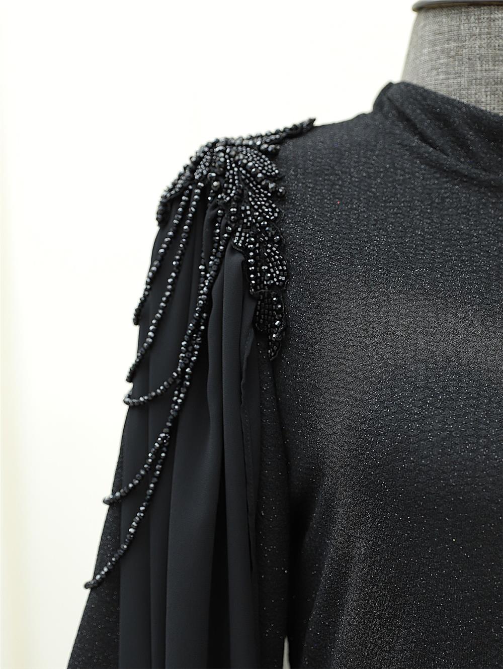 Omuzları Boncuklu Simli Prenses Abiye -Siyah (316-4624-R01)