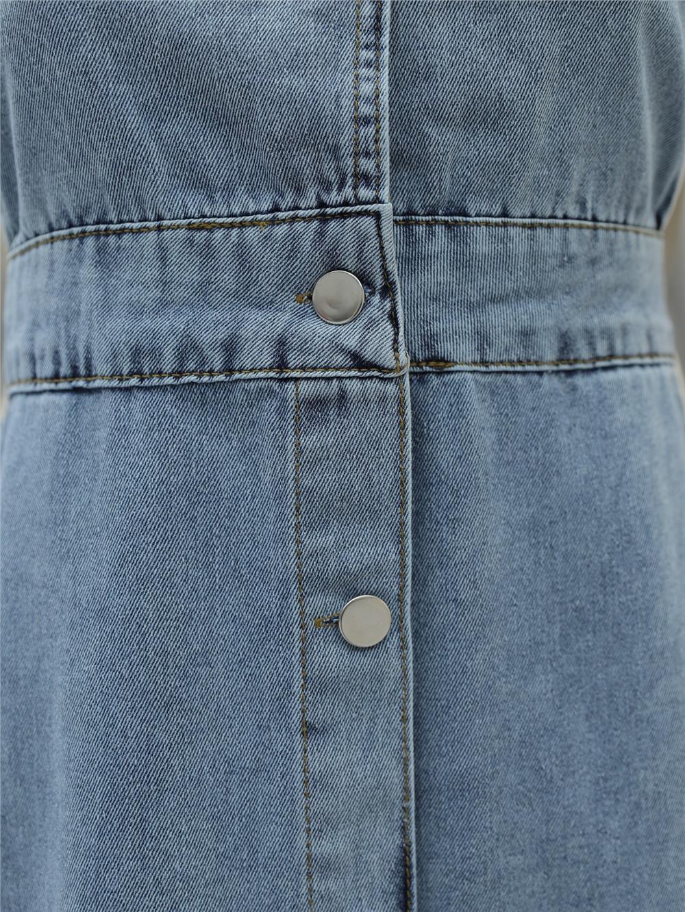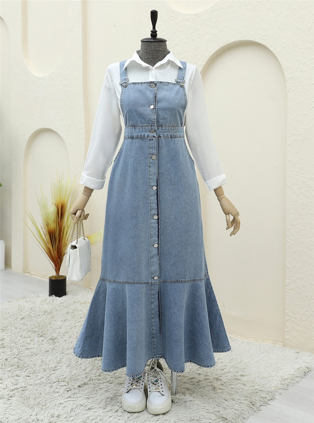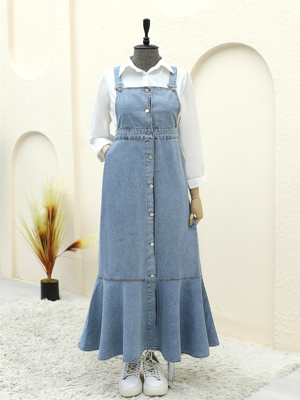 Önden Düğmeli Yan Cepli Eteği Fırfırlı Kot Jile -Buz Mavi (197-563-R37)