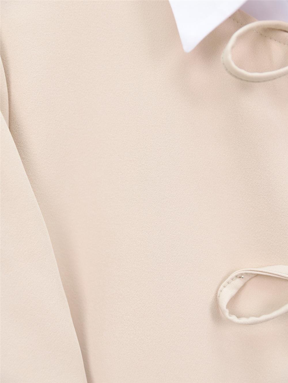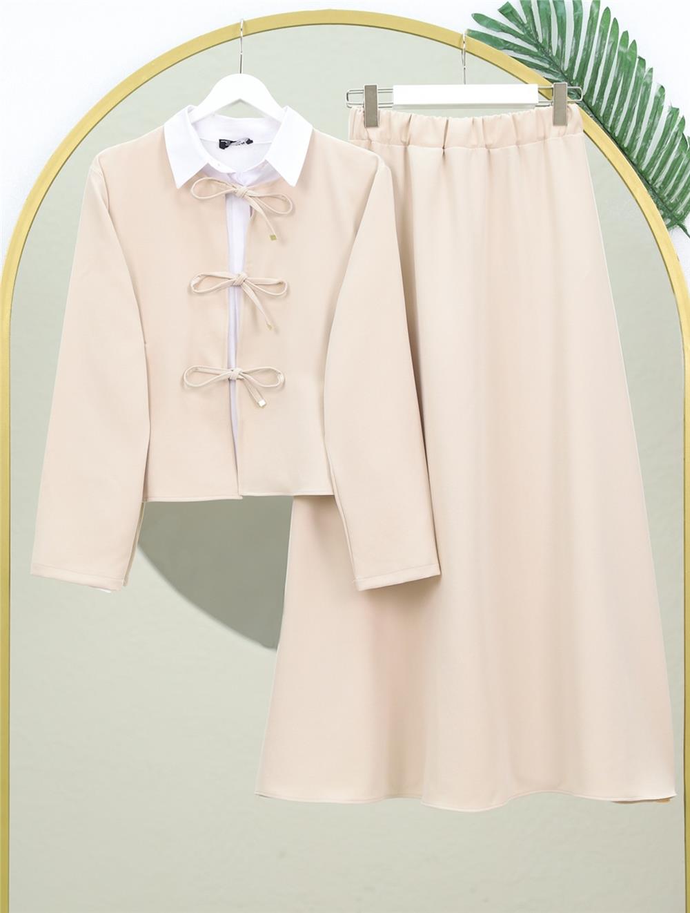 Önü Bağcıklı Beli Lastikli Çan Etekli Takım -Bej (398-4006-R56)
