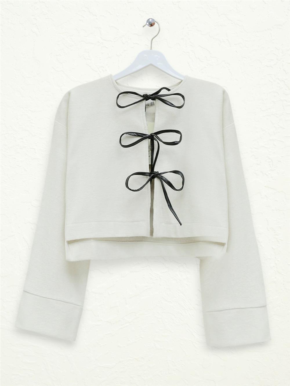 Önü Bağcıklı Kaşe Ceket -Krem (346-3043-R28)