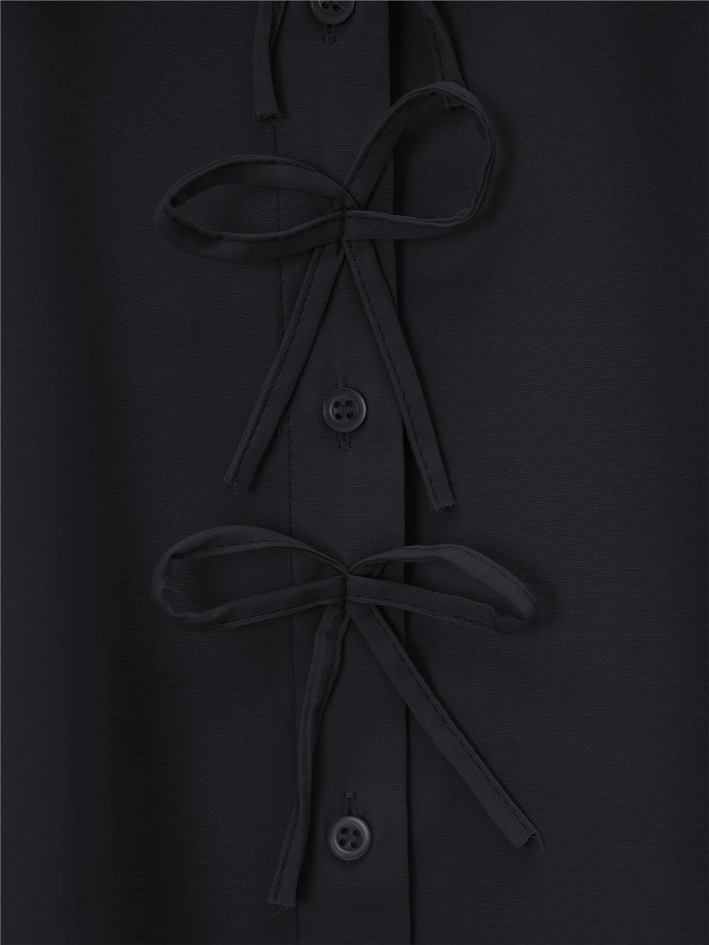 Önü Fiyonk Detaylı Bebe Yaka Poplin Gömlek -Siyah (120-1596-R01)