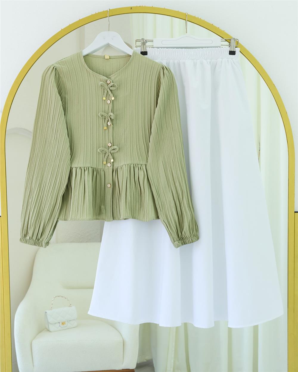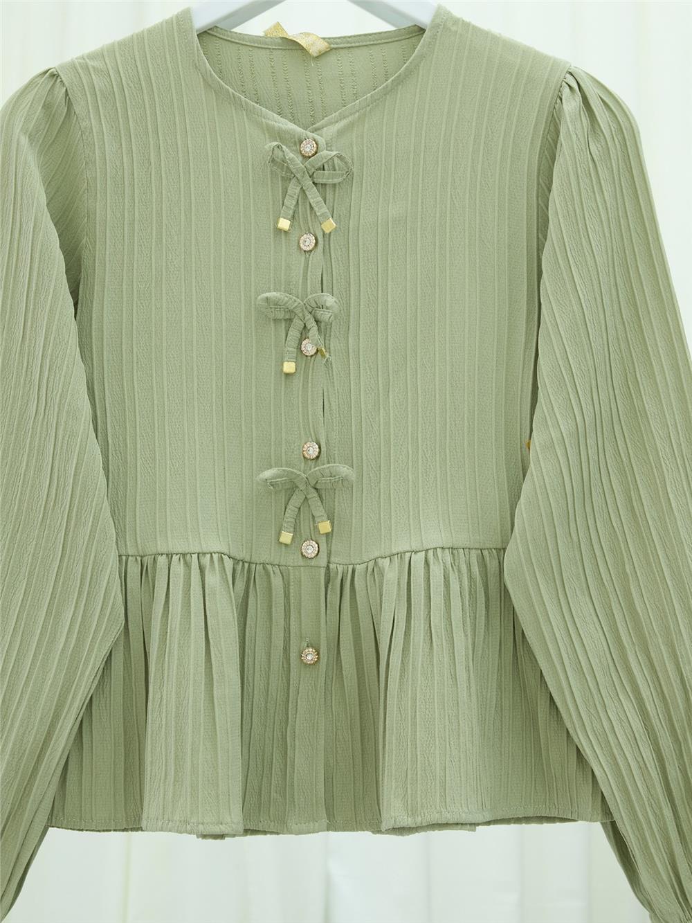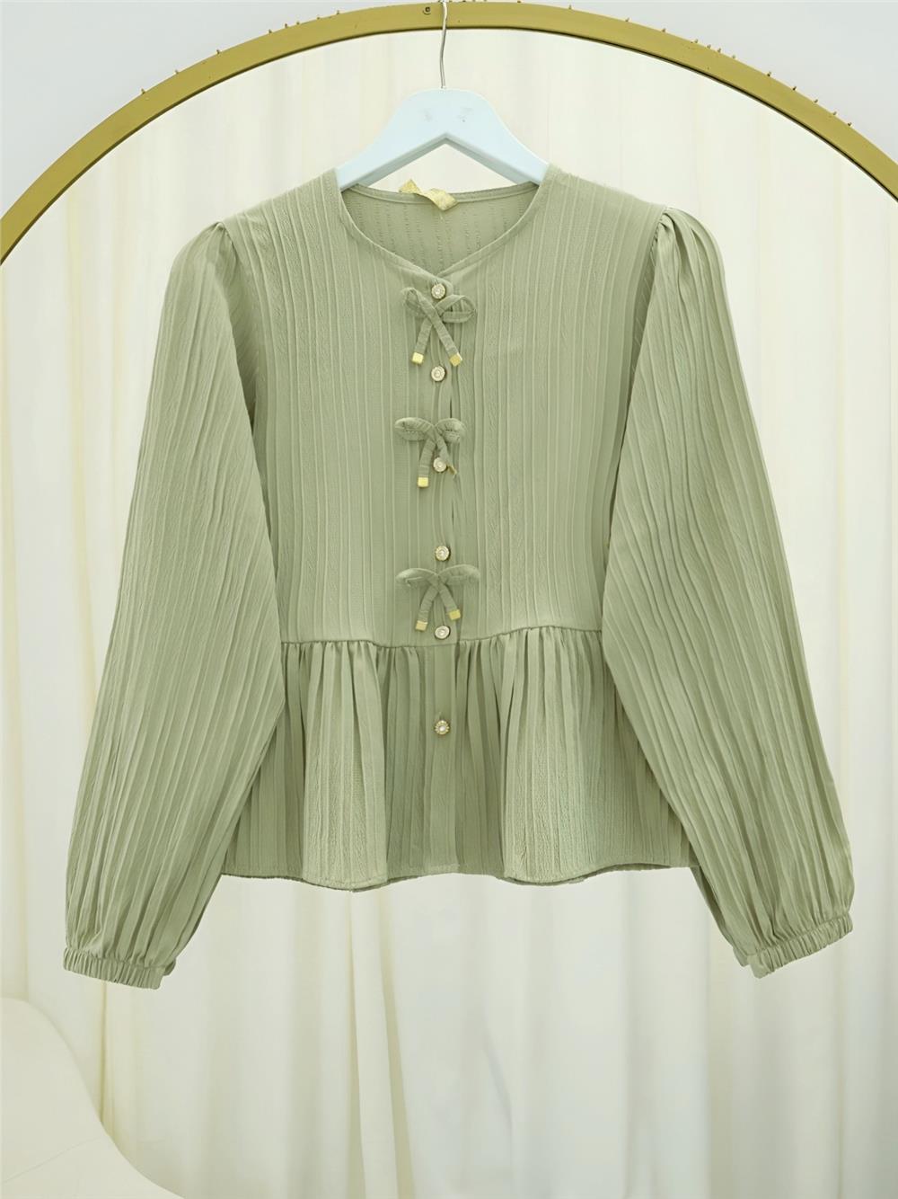 Önü Fiyonk Detaylı Düğmeli Kolu Lastikli Bluz -Çağla Y. (398-1043-R70)