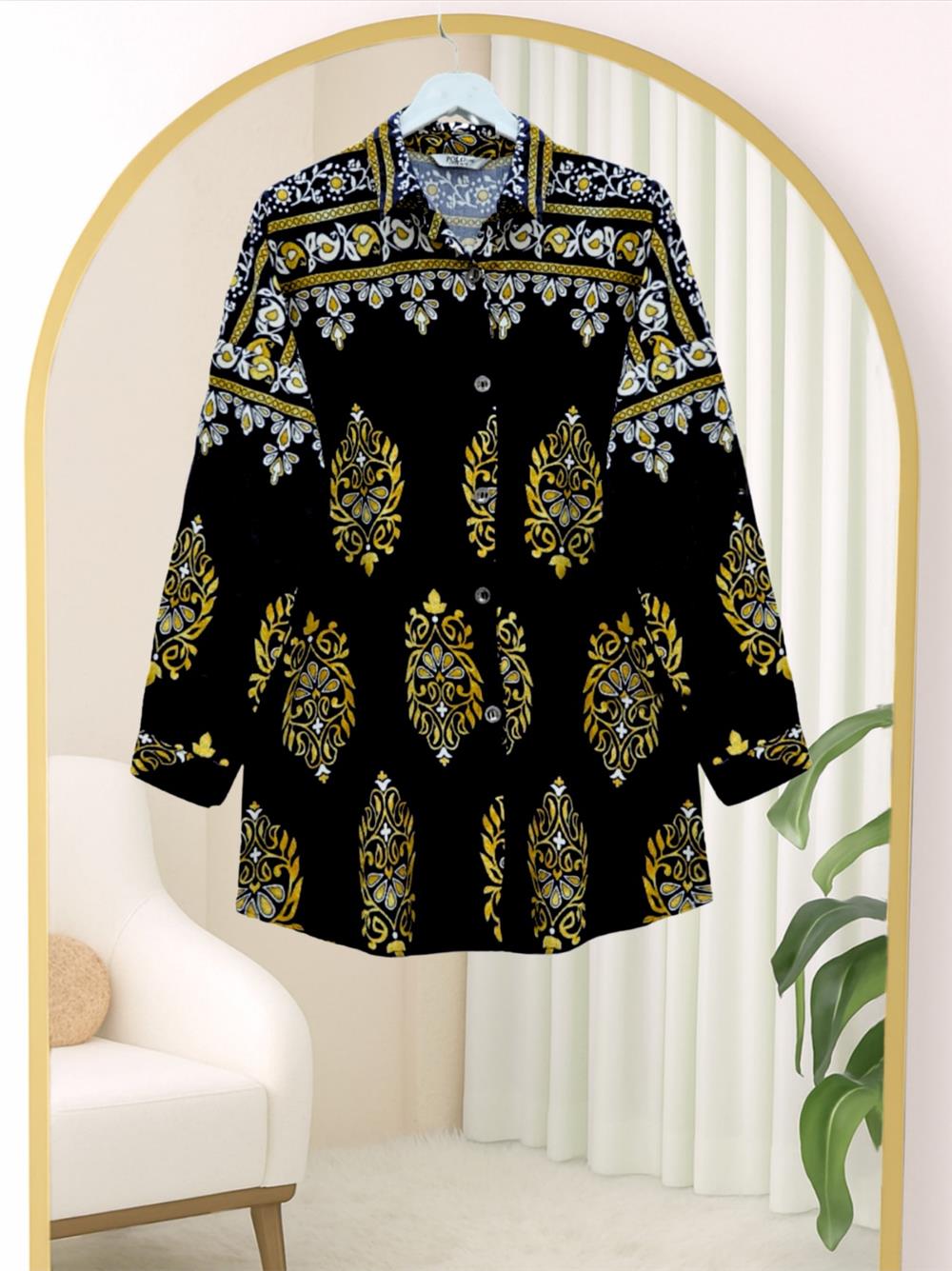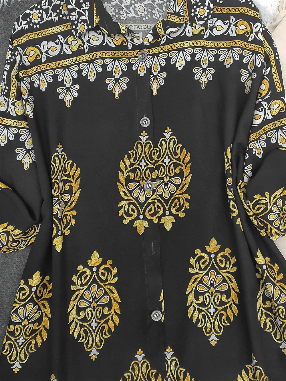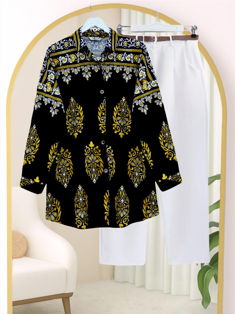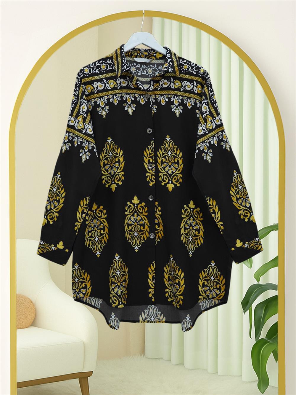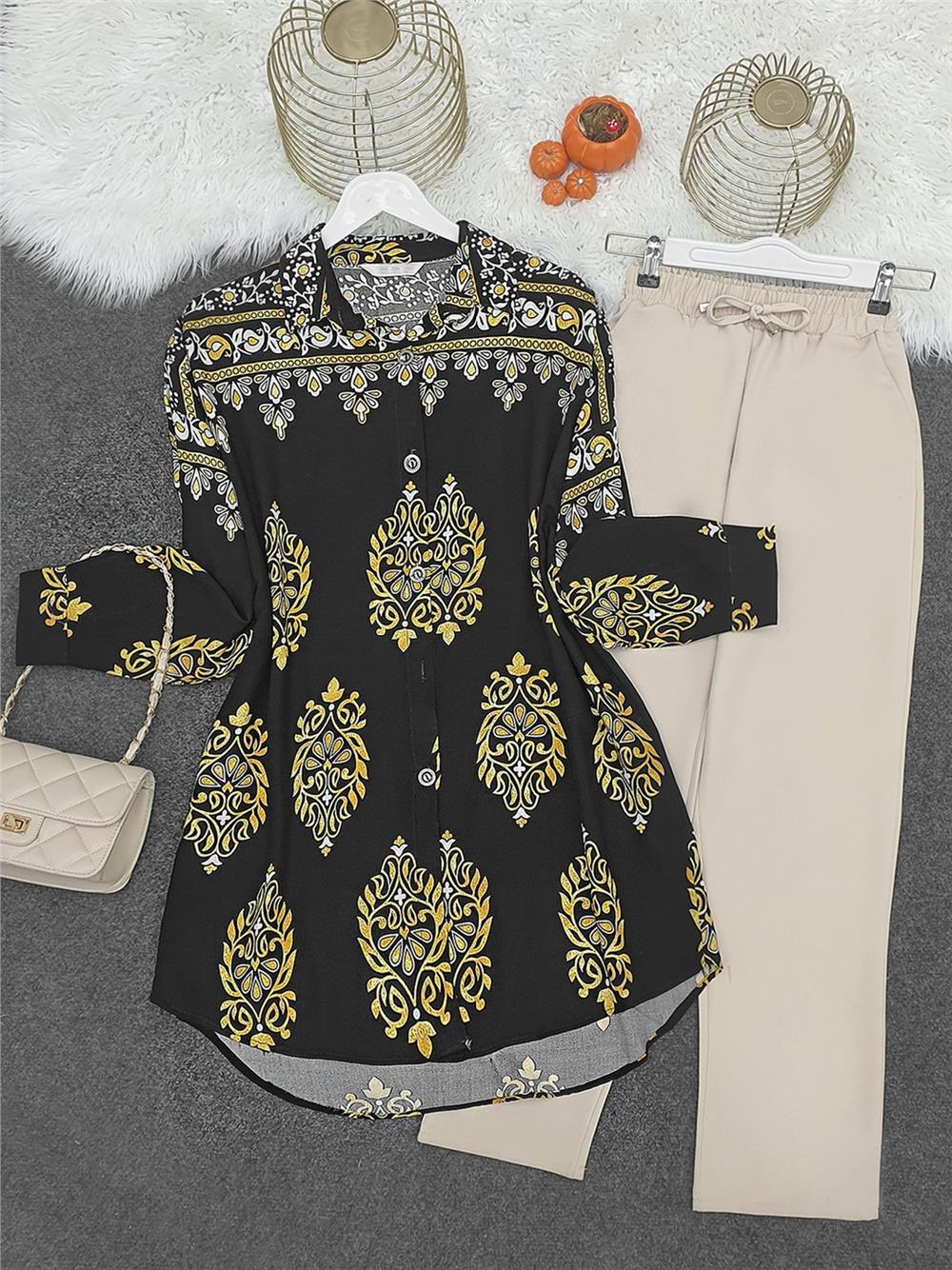 Oval Kesim Boydan Düğmeli Viskon Tunik -Siyah (199-2043-R01)
