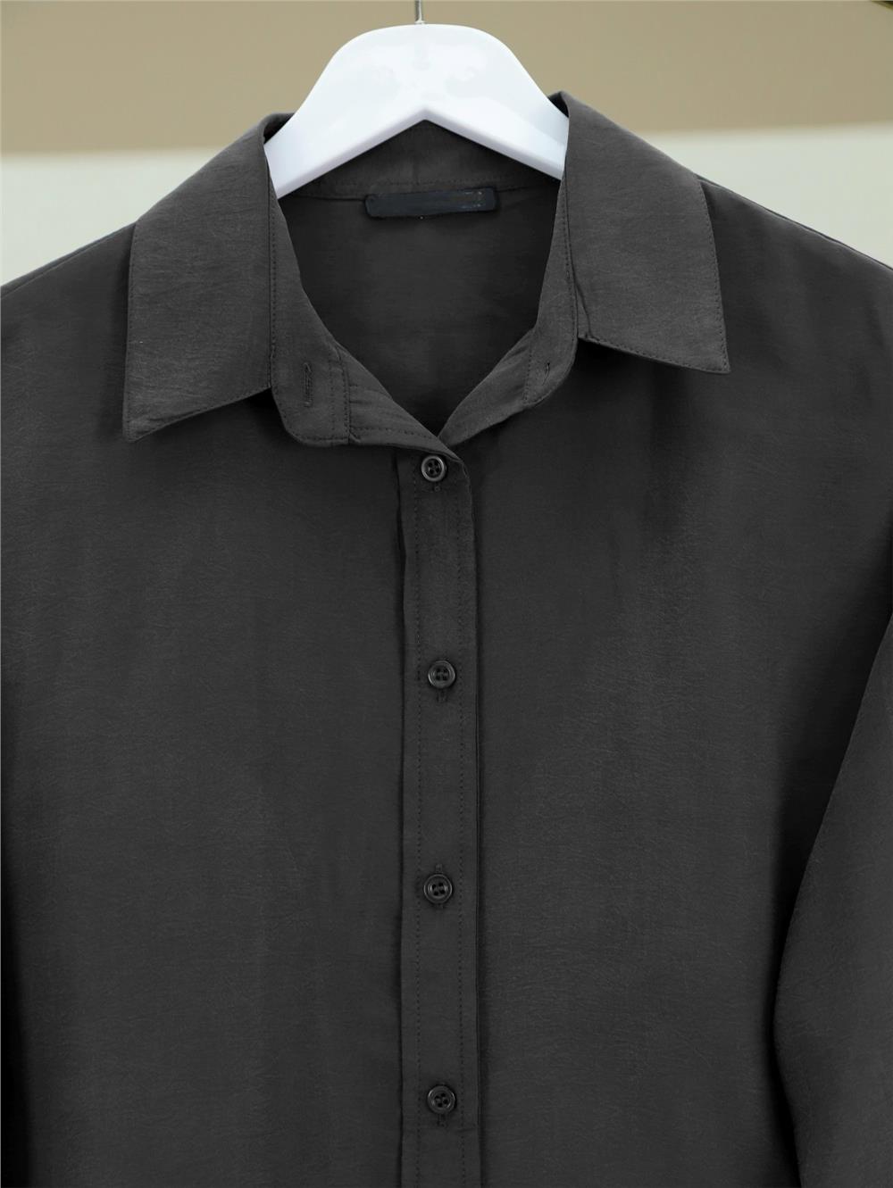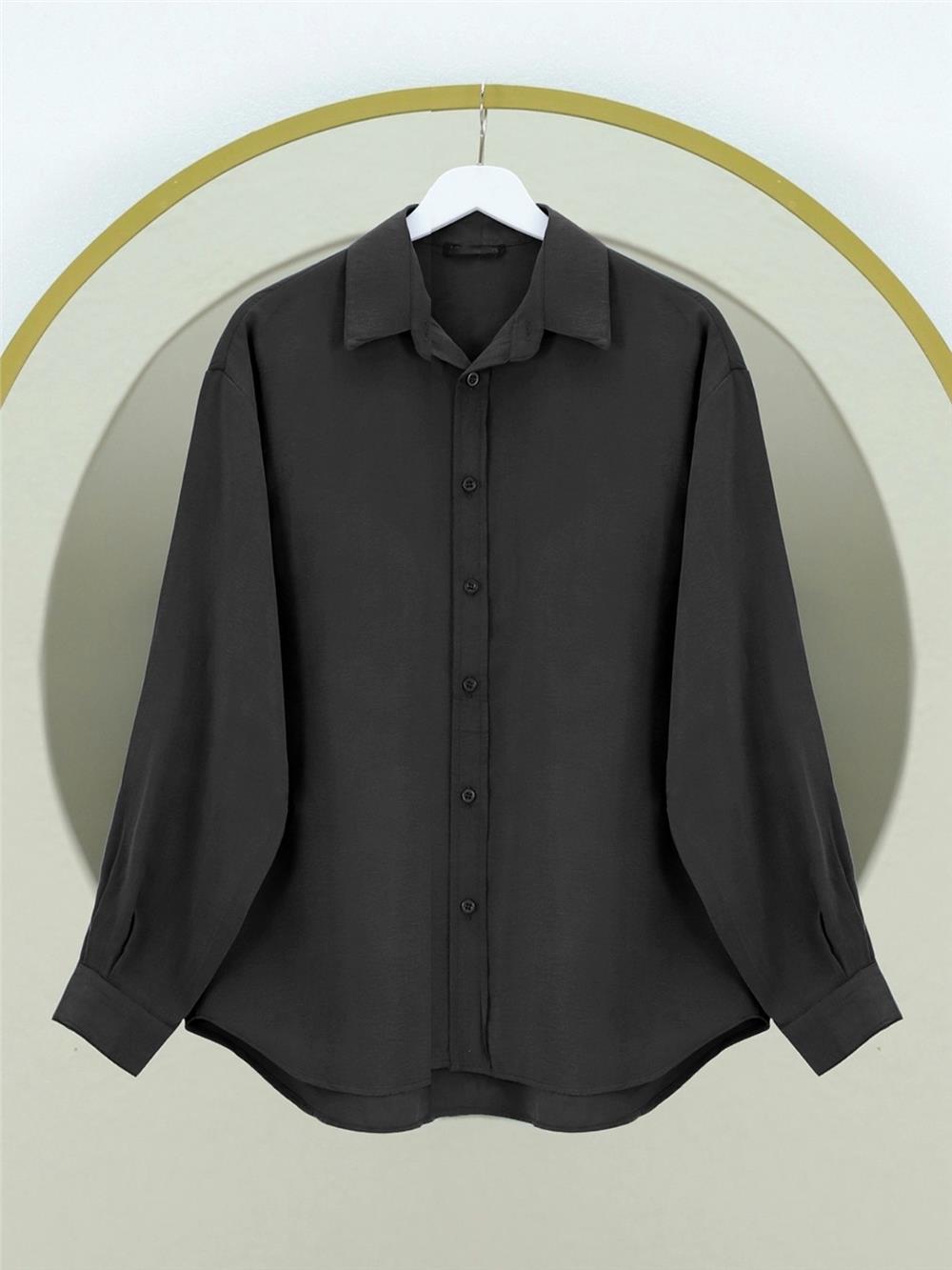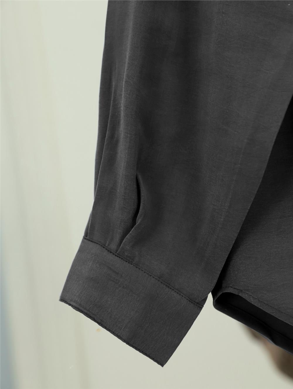 Oval Kesim Tensel Cupra Gömlek -Siyah (317-2407-R01)
