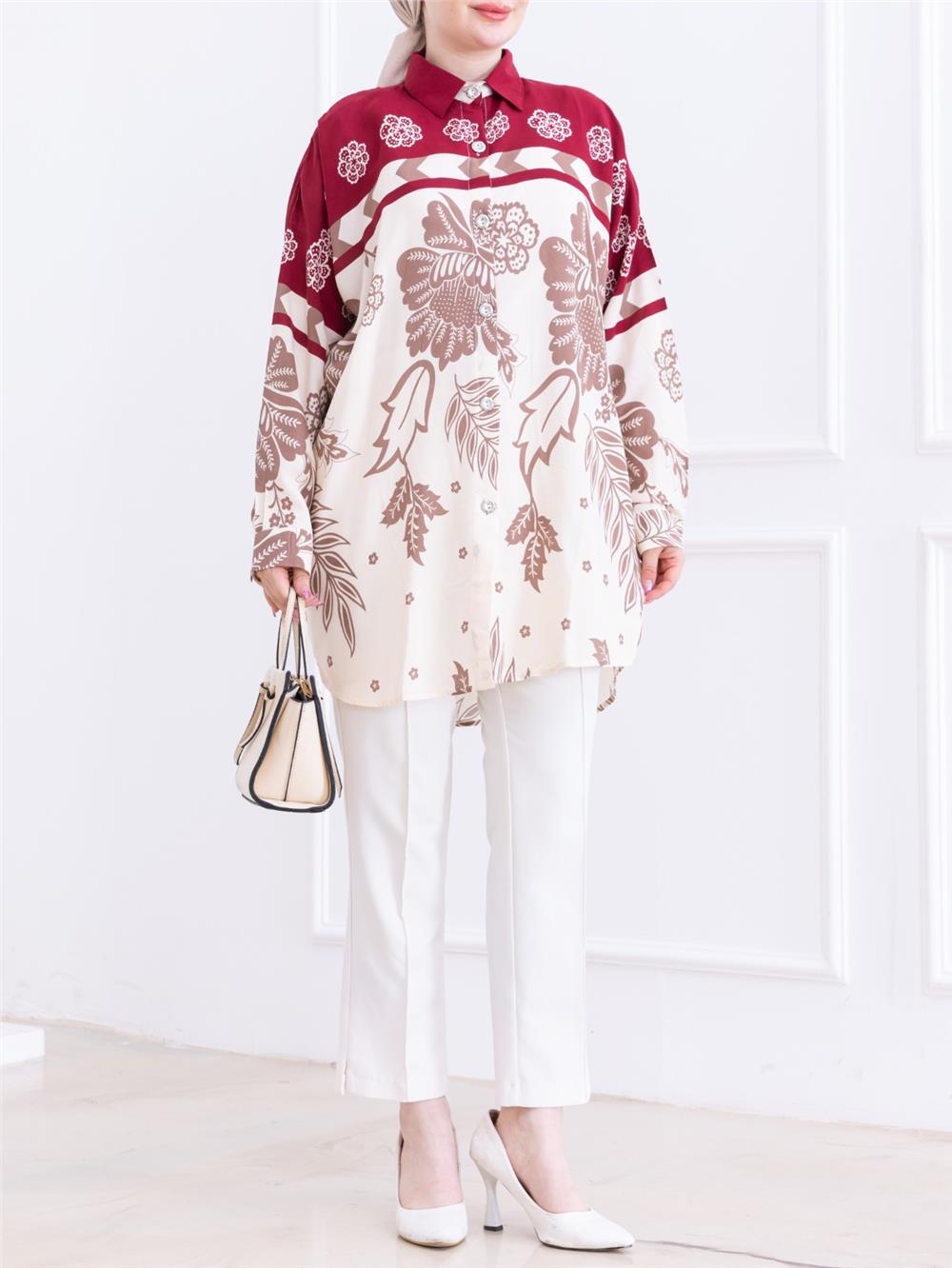 Oversize Oval Kesim Viskon Tunik -Bordo (199-2044-R04)