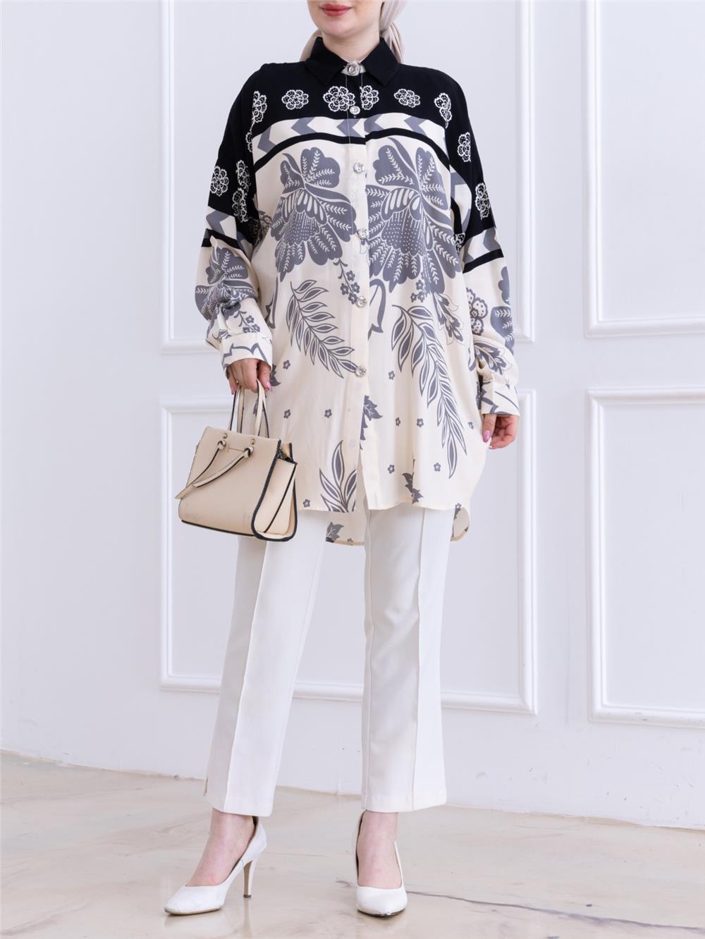 Oversize Oval Kesim Viskon Tunik -Siyah (199-2044-R01)
