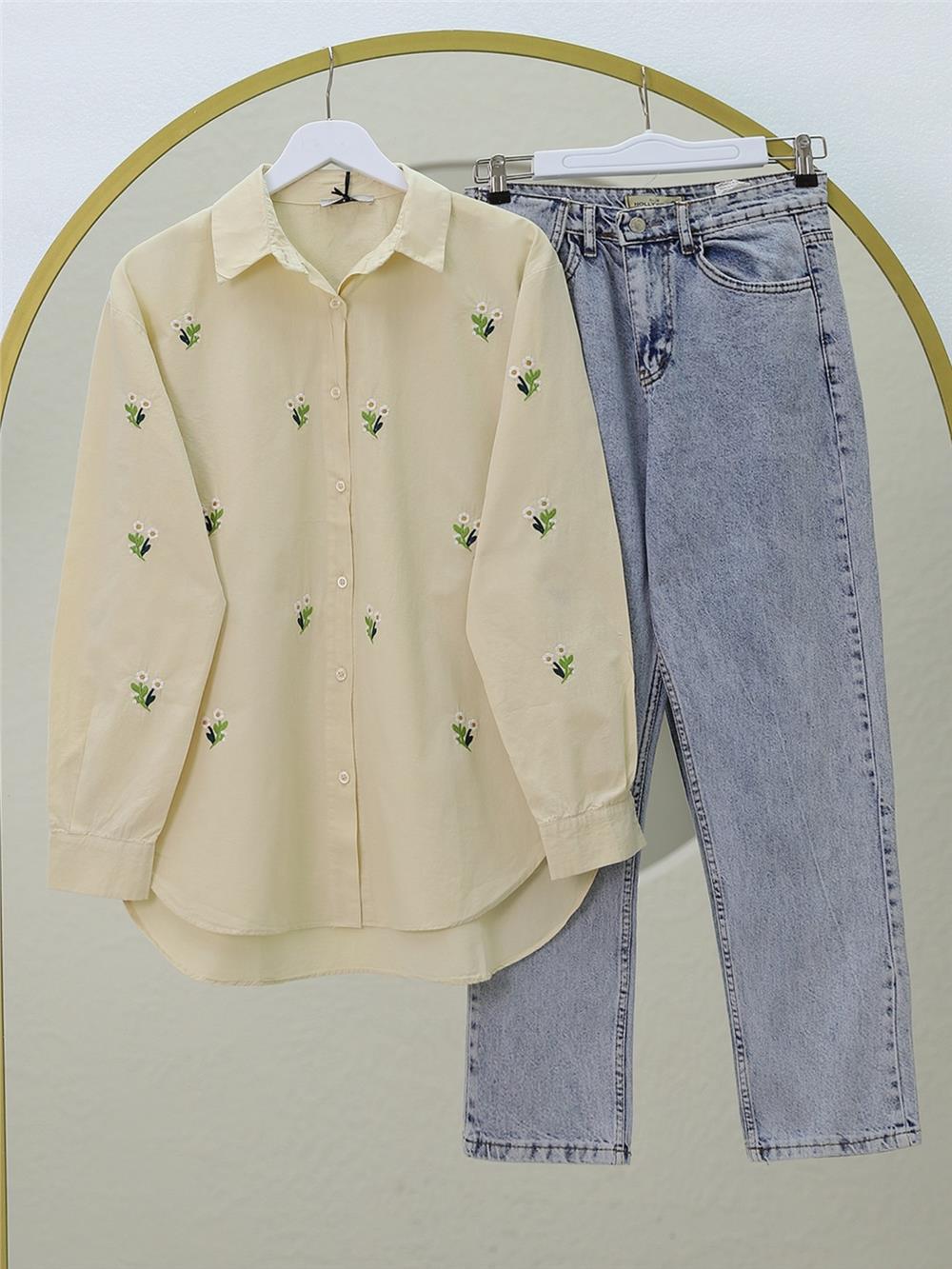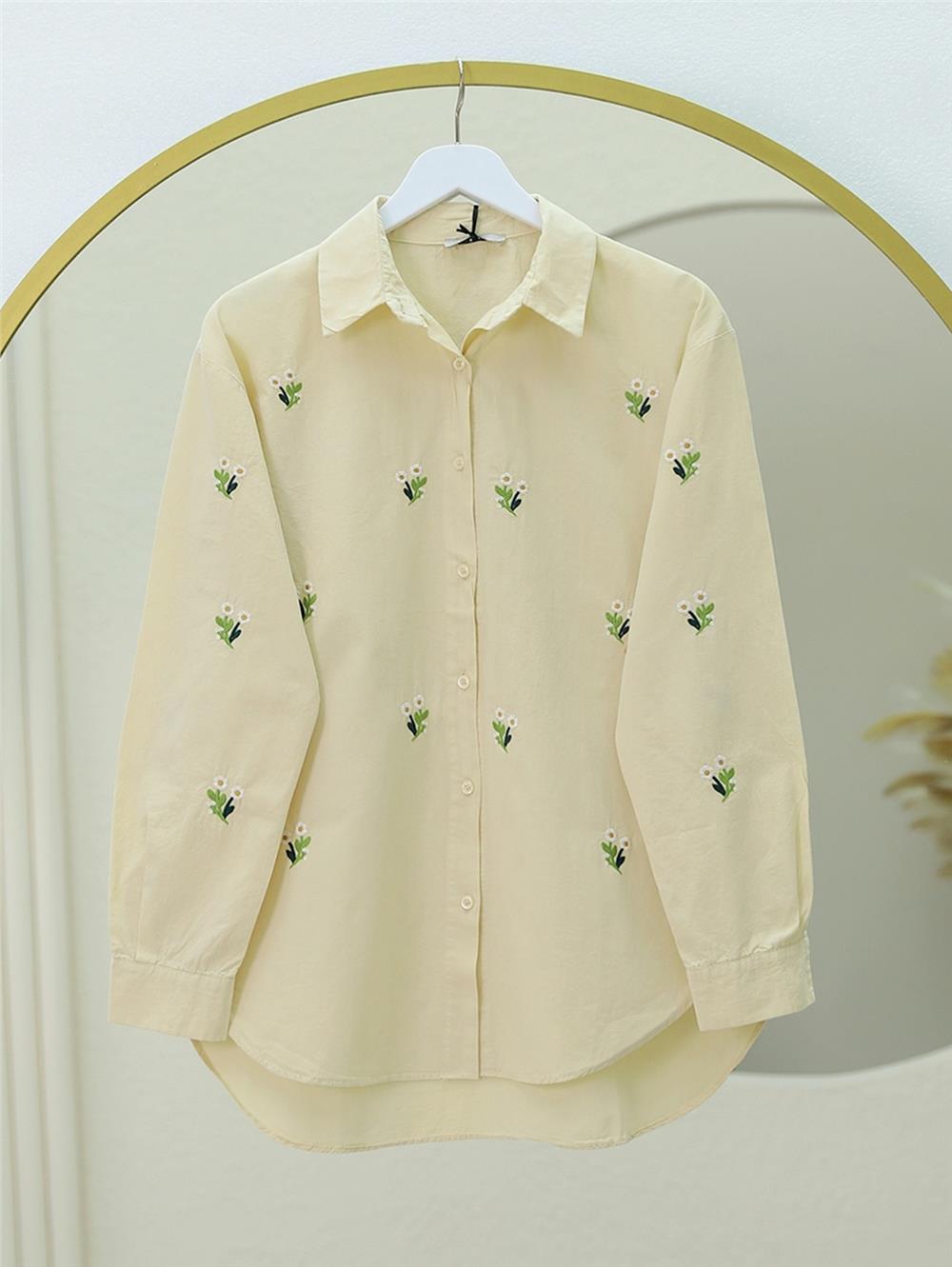 Papatya Detaylı Arkası Uzun Düğmeli Gömlek -Bej (403-10055-R56)