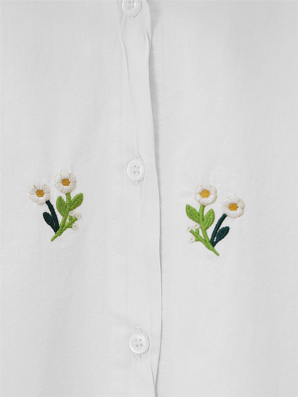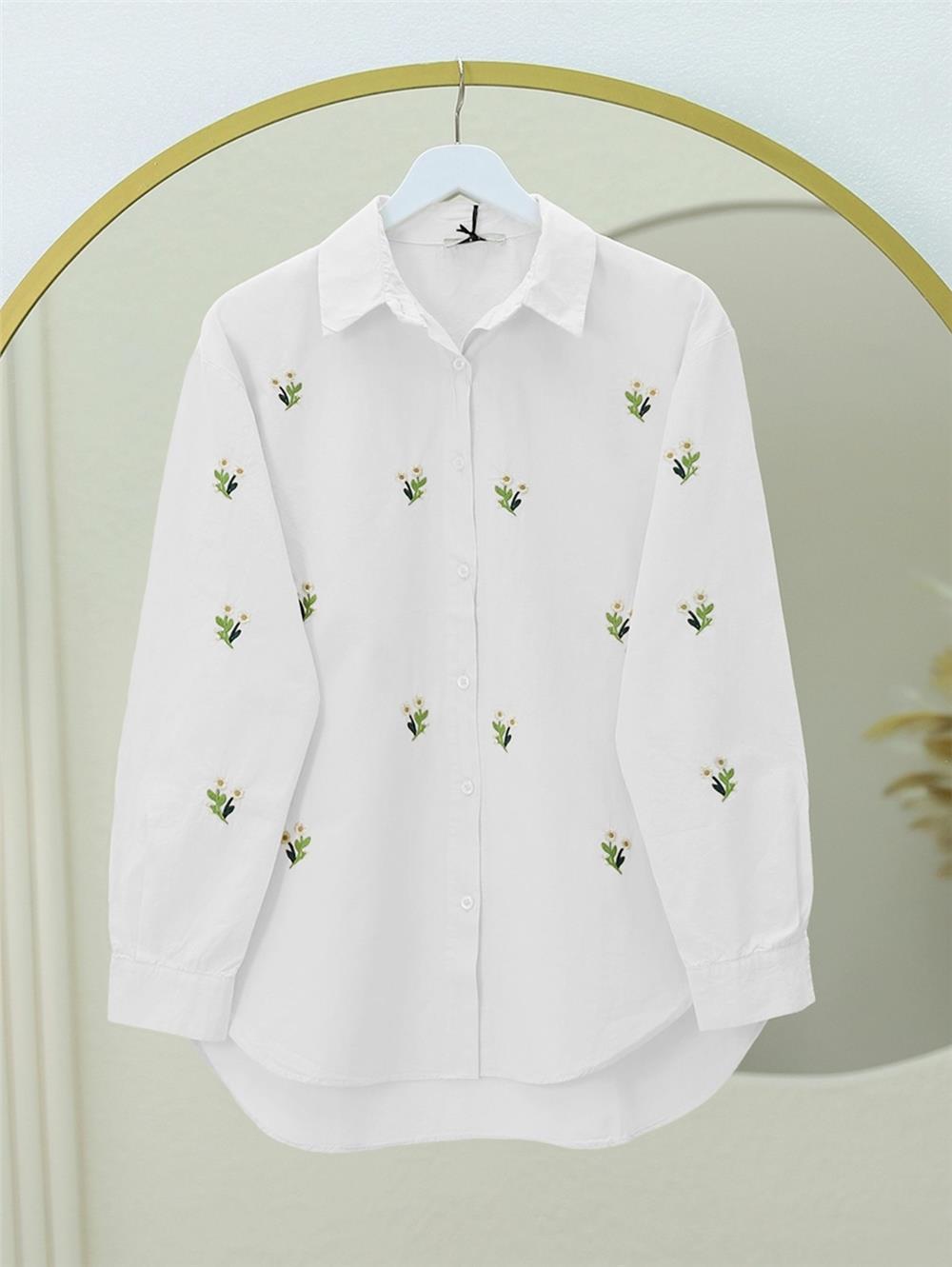 Papatya Detaylı Arkası Uzun Düğmeli Gömlek -Beyaz (403-10055-R02)