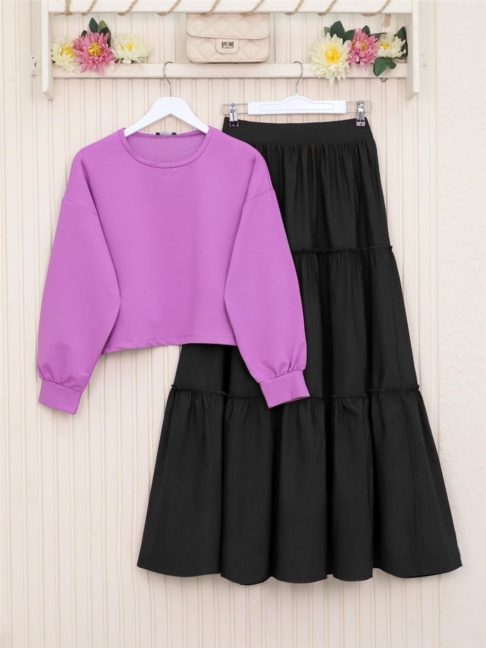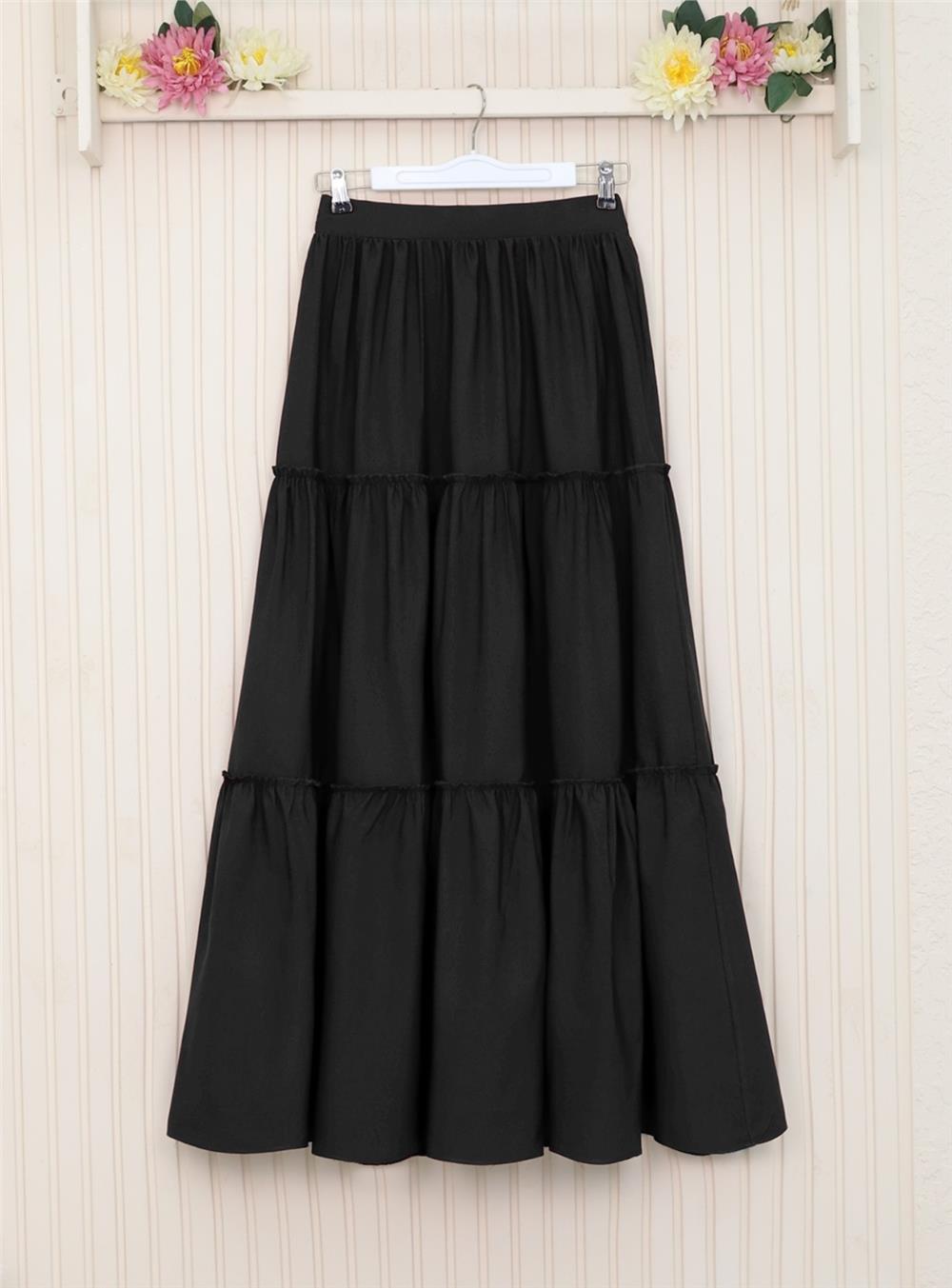 Parçalı Beli Lastikli Etek -Siyah (118-10046-R01)