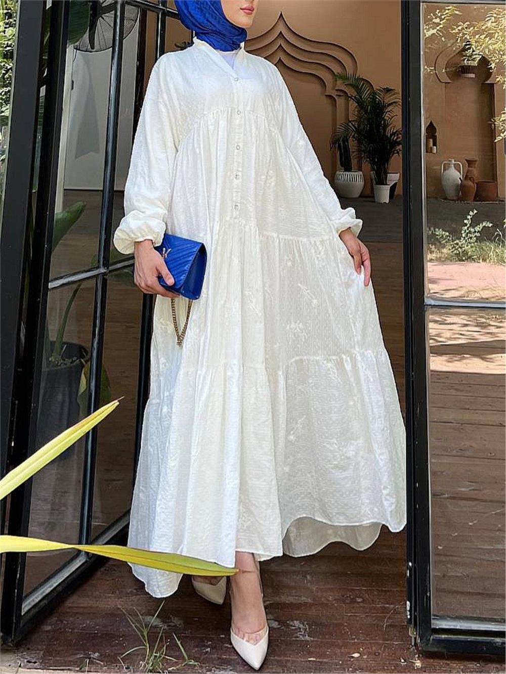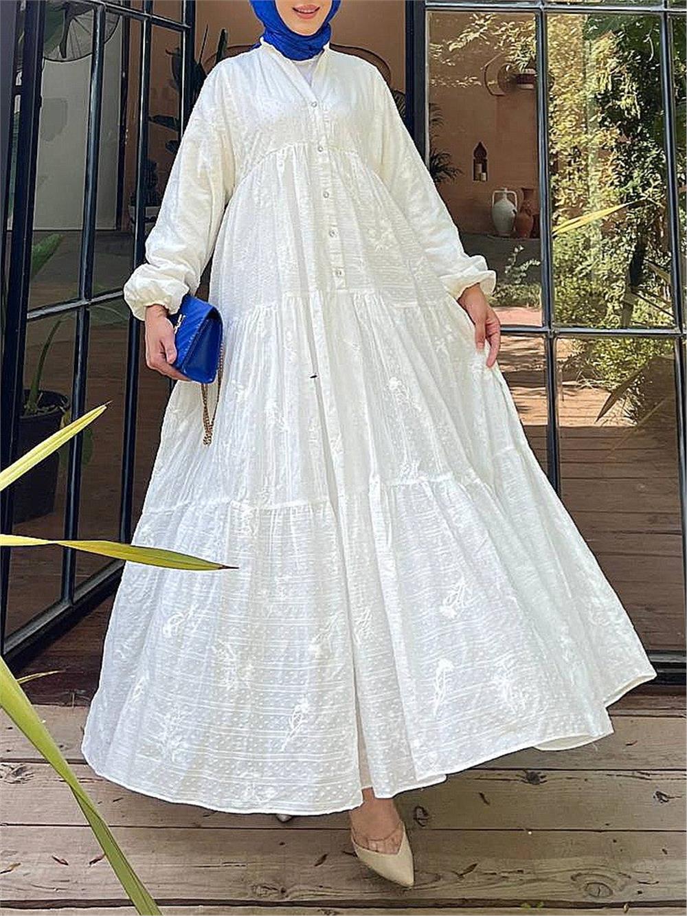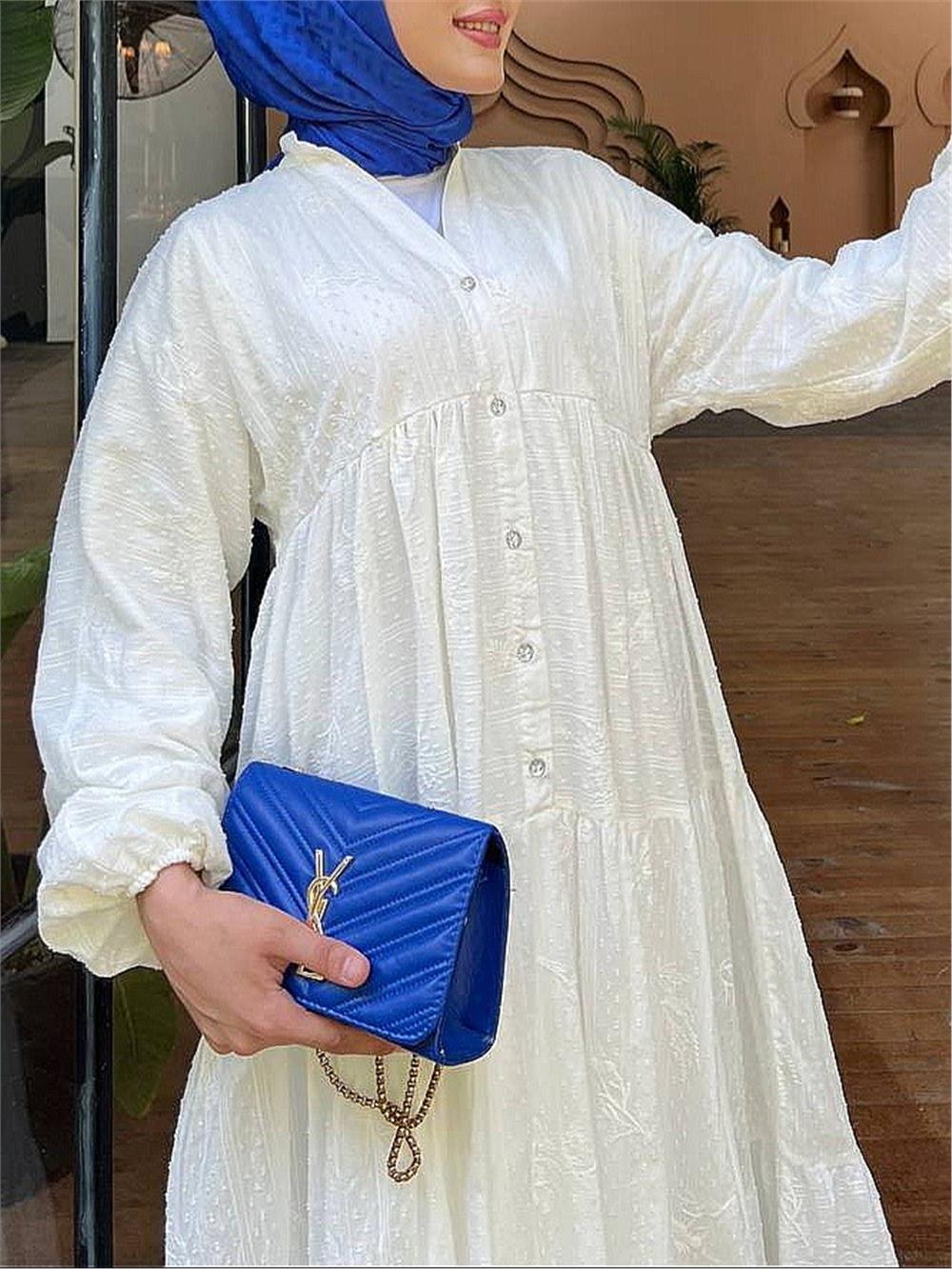 Parçalı Düğme Detaylı Elbise -Beyaz (144-1000-R02)