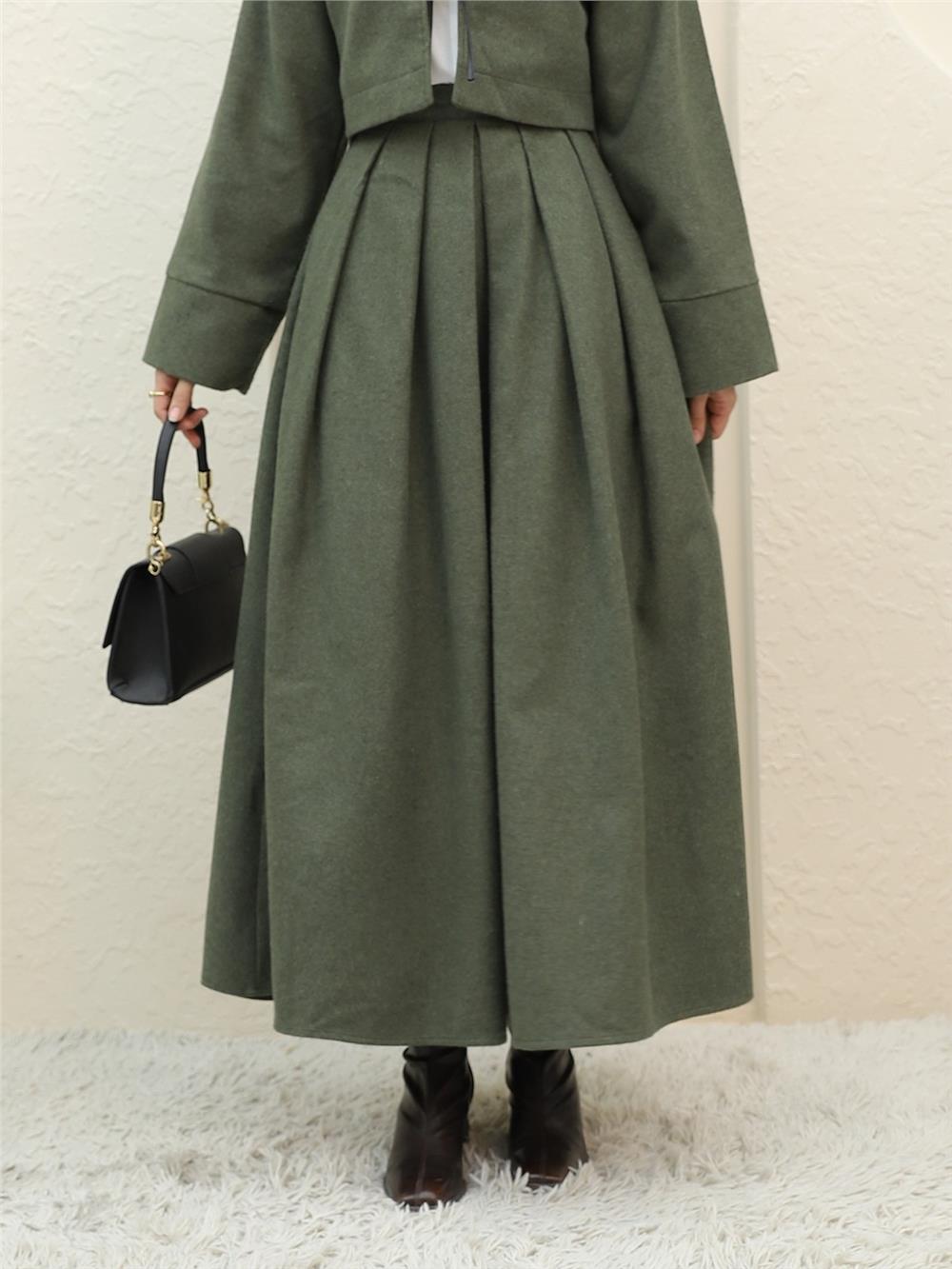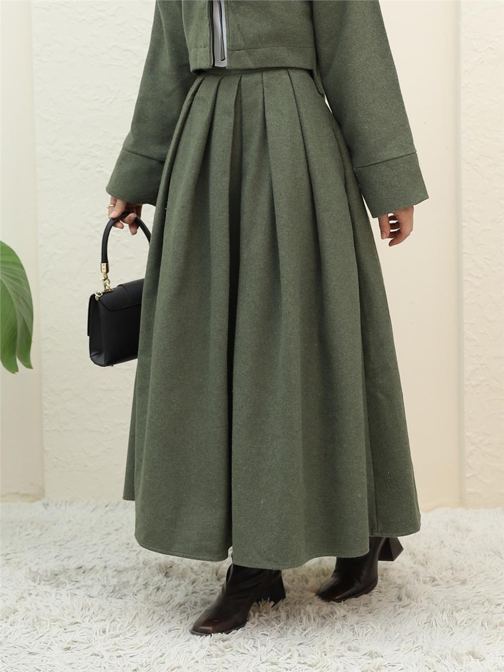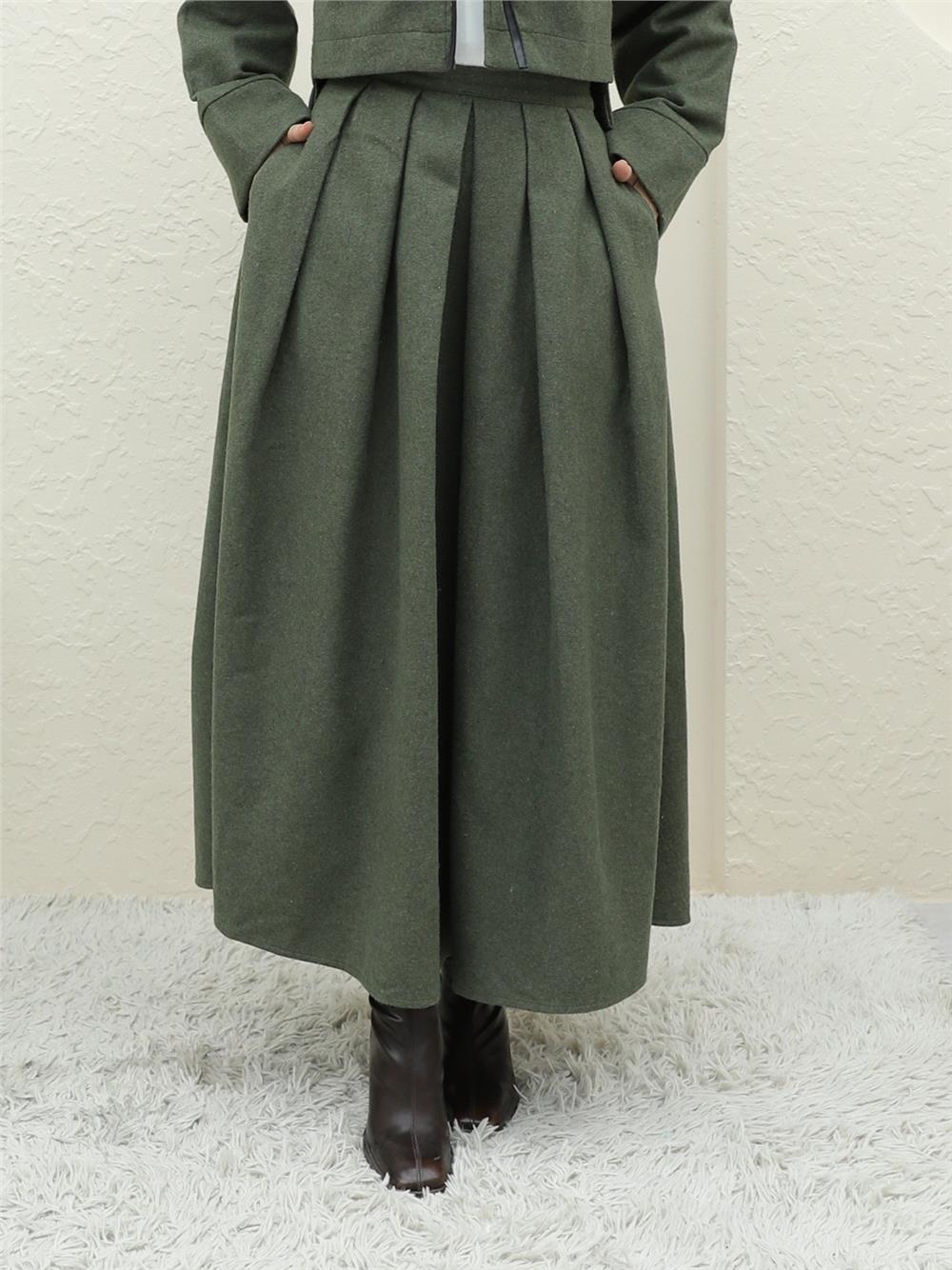 Pileli Fermuarlı Kaşe Etek -Haki (346-3045-R05)