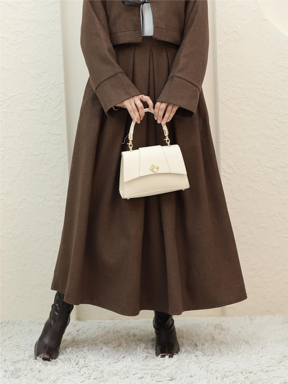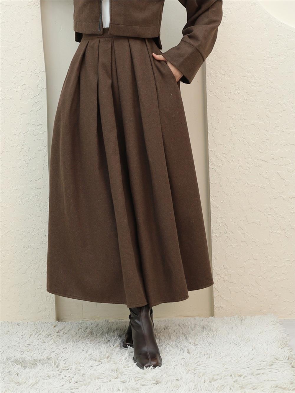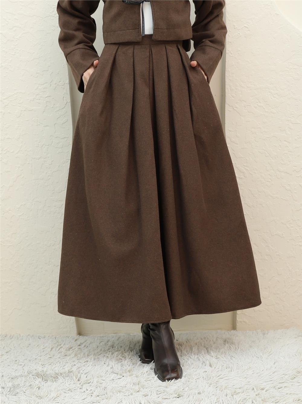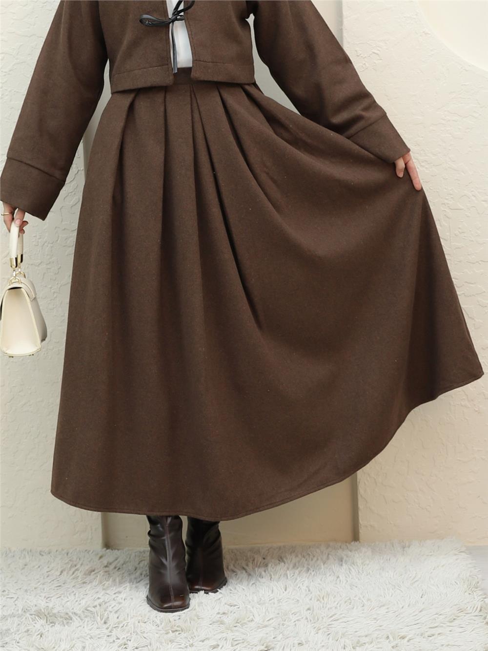 Pileli Fermuarlı Kaşe Etek -Kahve (346-3045-R15)