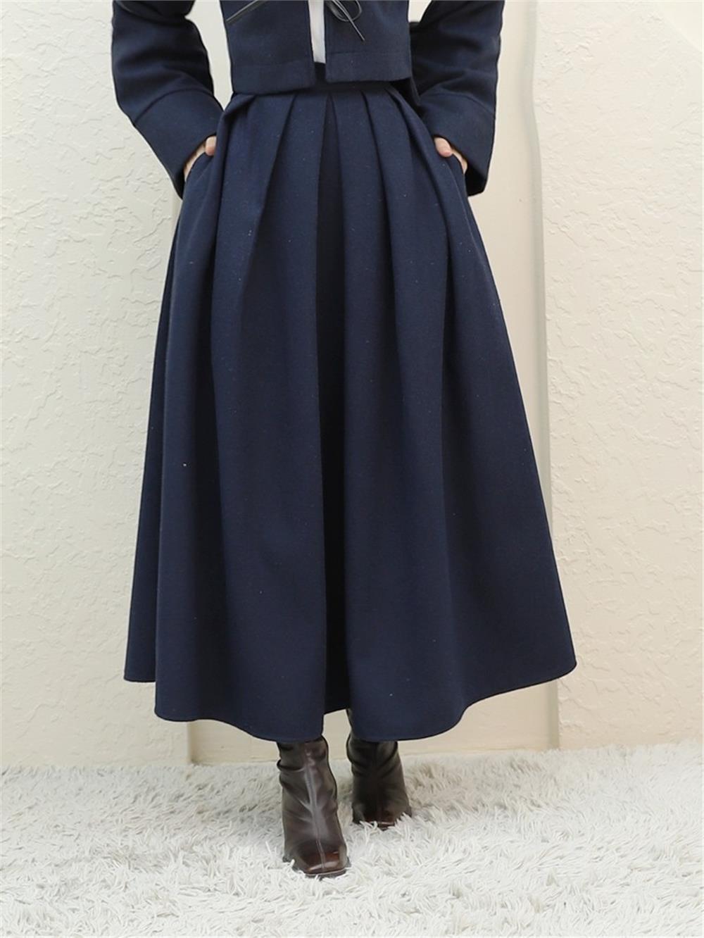 Pileli Fermuarlı Kaşe Etek -Laci (346-3045-R03)