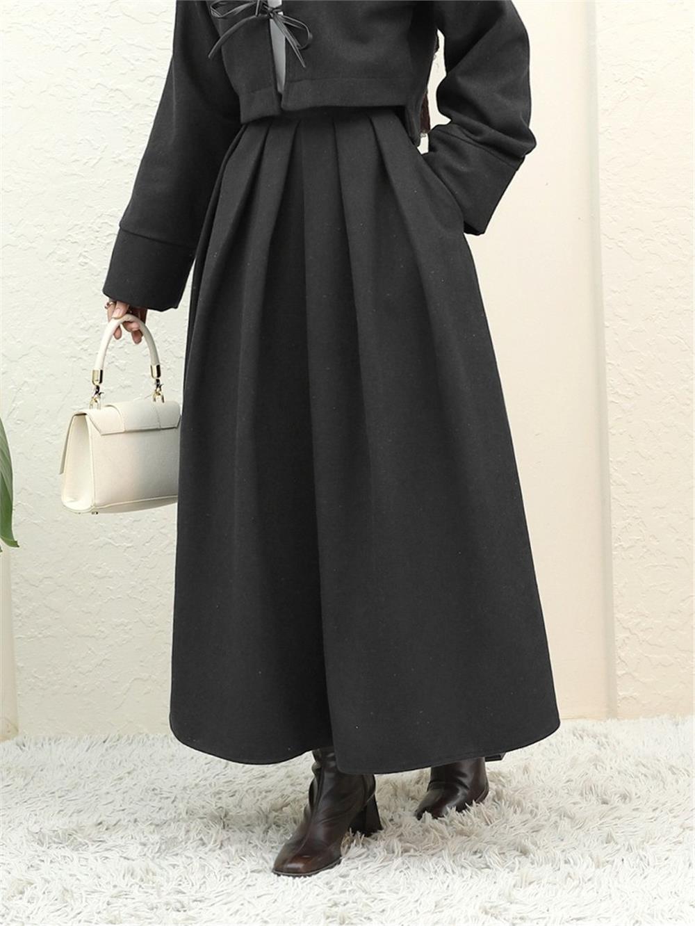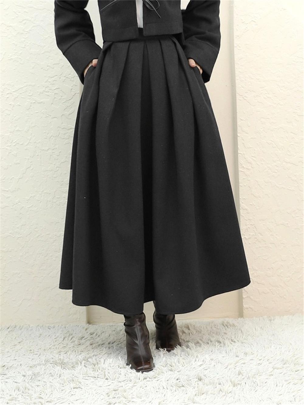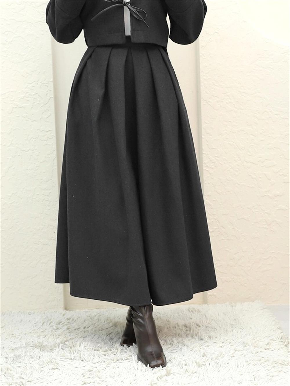 Pileli Fermuarlı Kaşe Etek -Siyah (346-3045-R01)