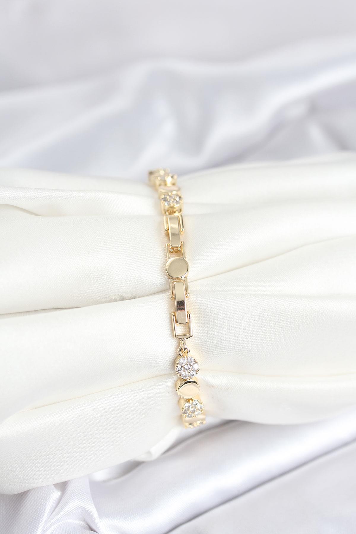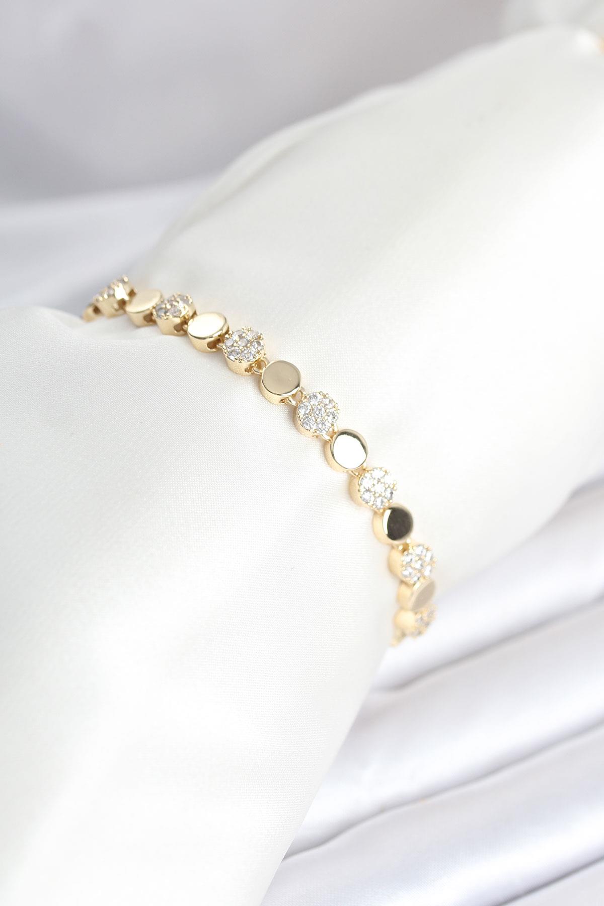 Pirinç Gold Renk Nokta Model Zirkon Taşlı Kadın Bileklik (BB8026)