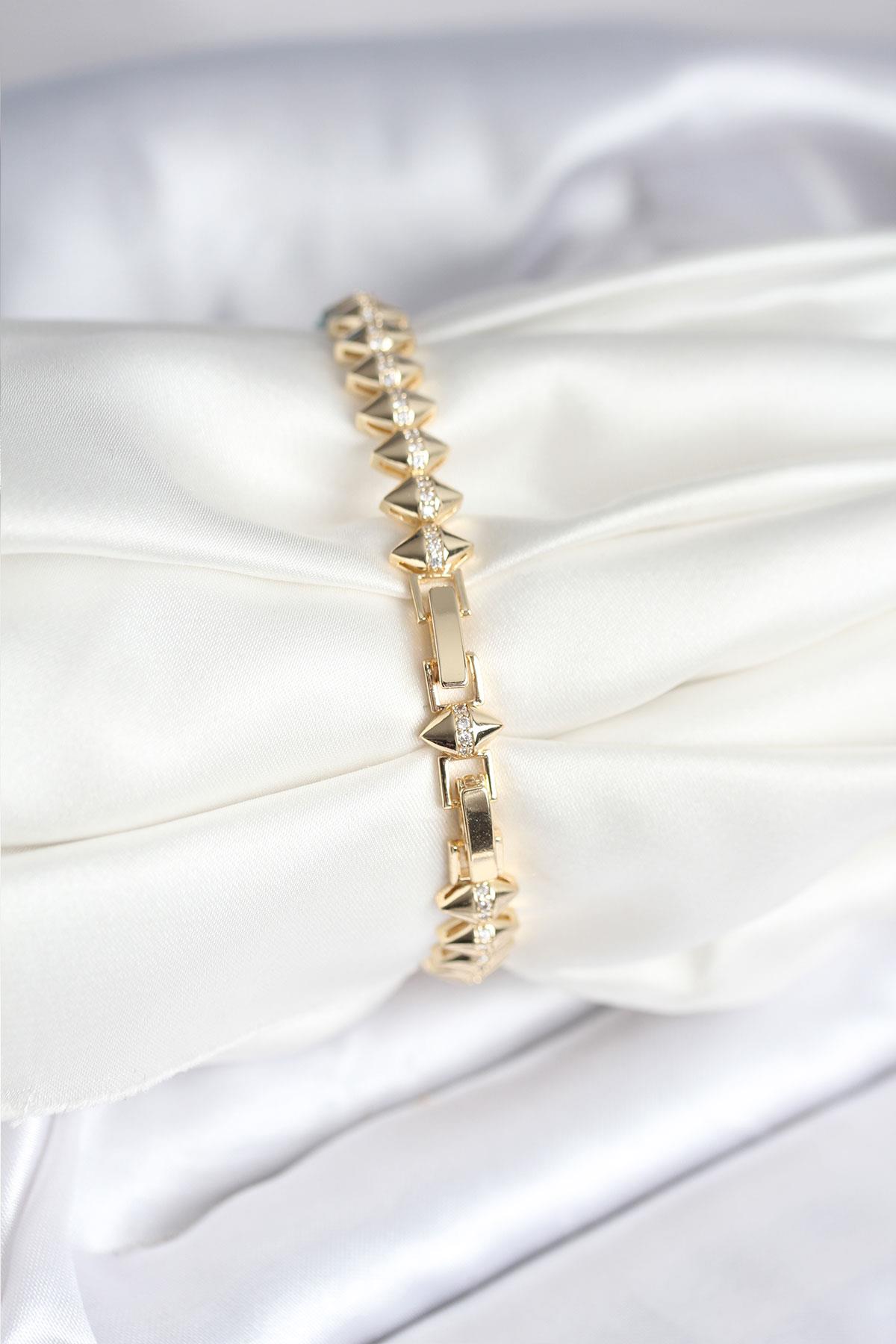 Pirinç Gold Renk Zirkon Taşlı Baklava Model Kadın Bileklik (BB8024)