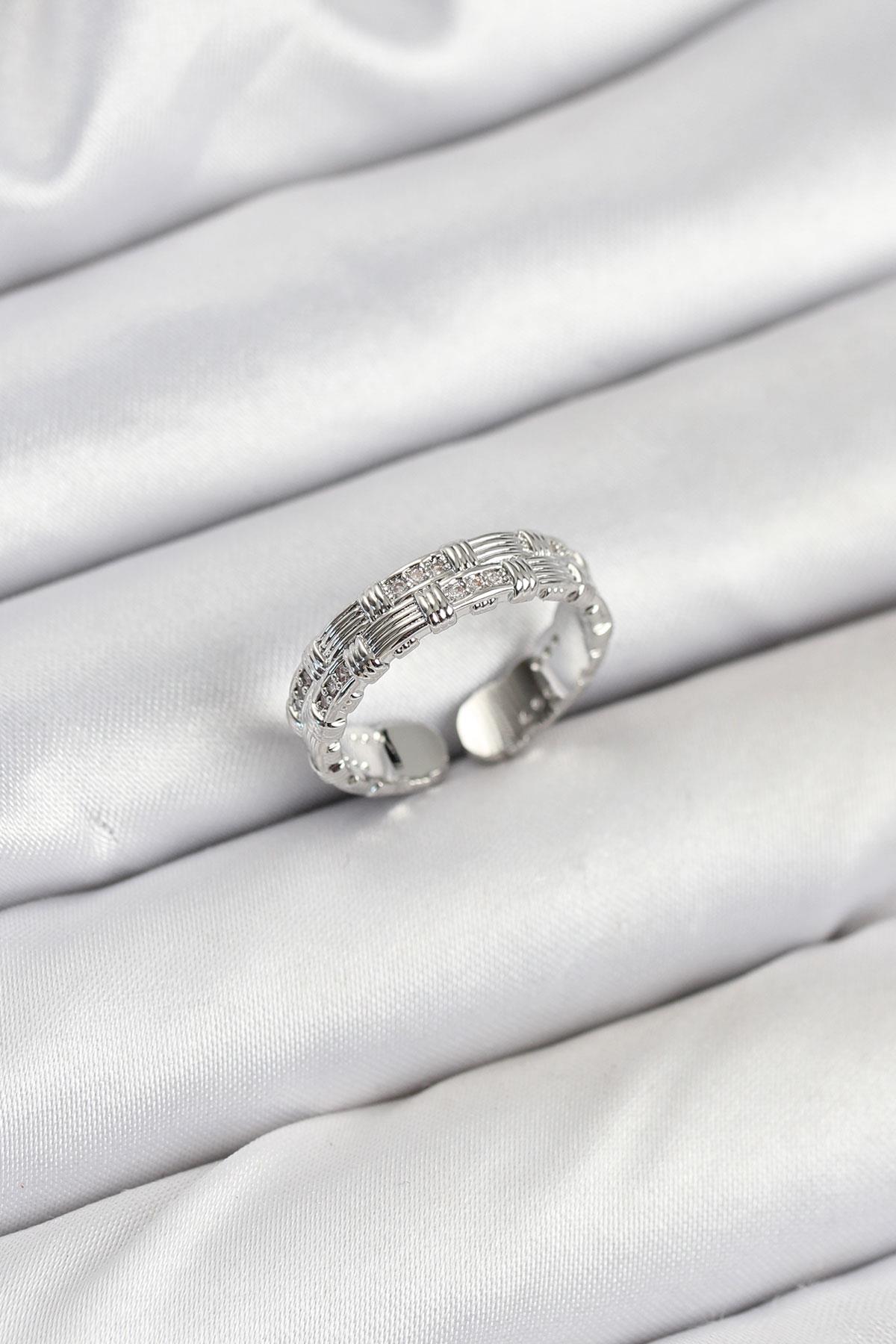 Pirinç Gümüş Renk Zirkon Taşlı Sırım Kadın Yüzük (BYK3847)