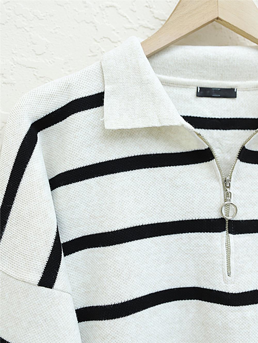 Polo Yaka Fermuarlı Triko Tunik -Krem (357-6184-R28)