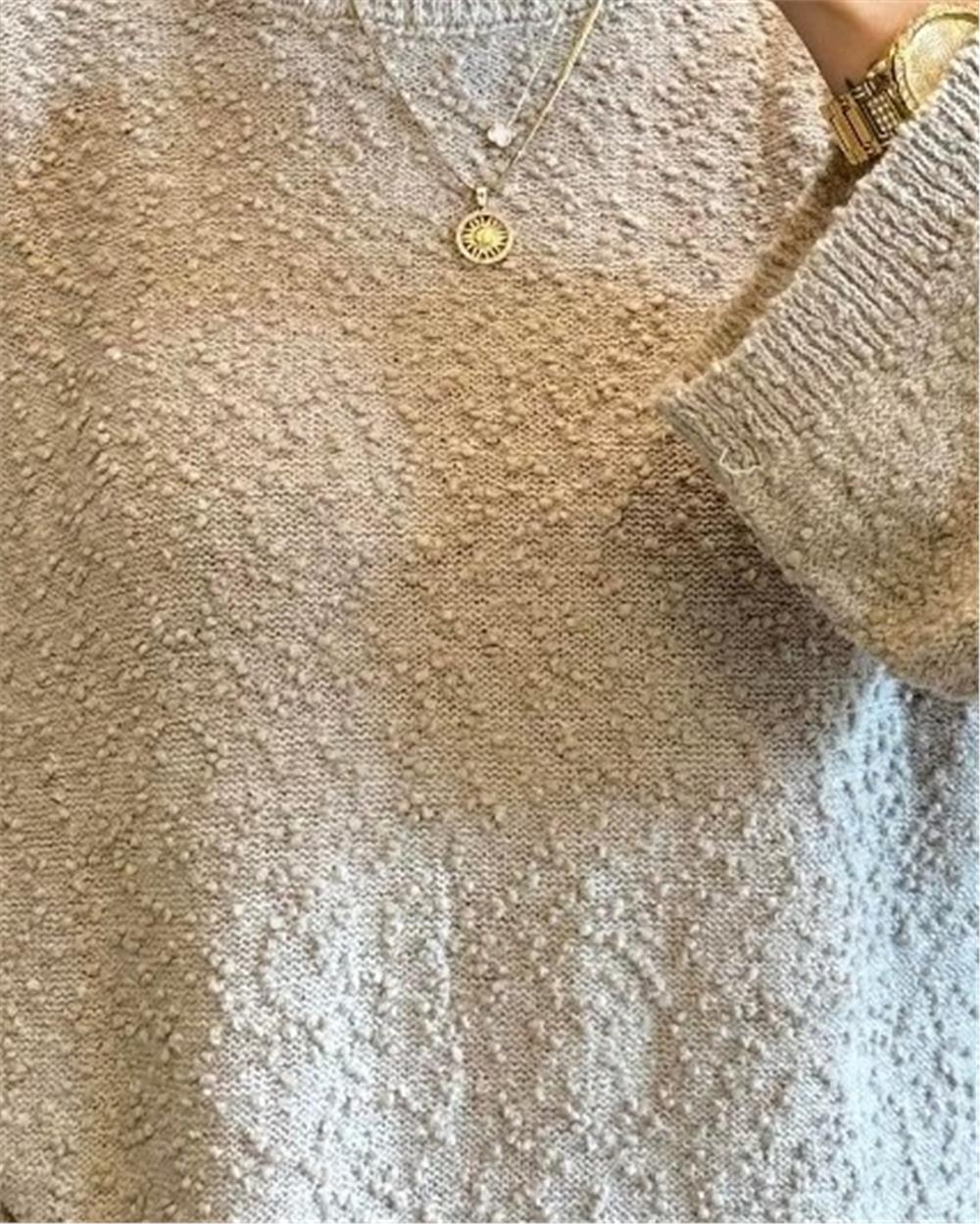 Ponpon Dokulu Salaş Triko Kazak -Açık Vizon (385-3505-R51)