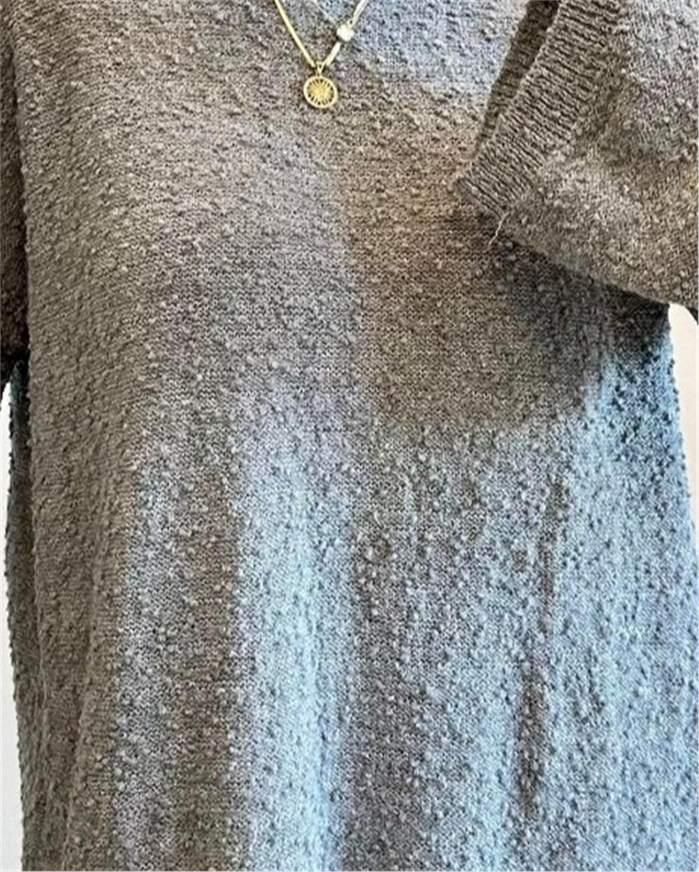 Ponpon Dokulu Salaş Triko Kazak -Gri (385-3505-R11)