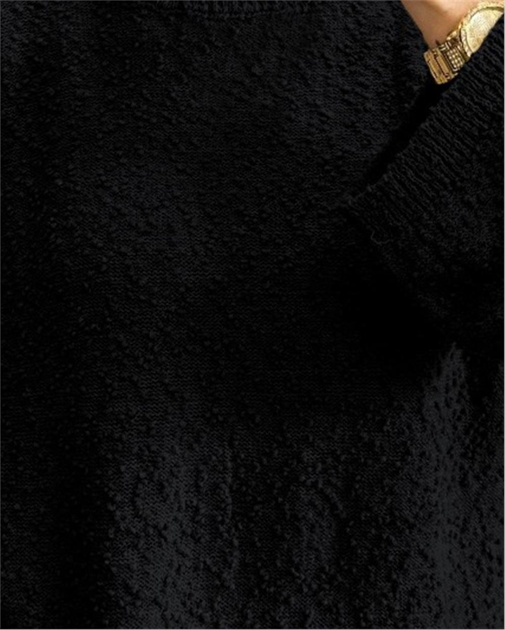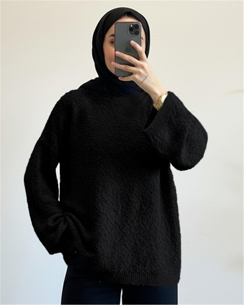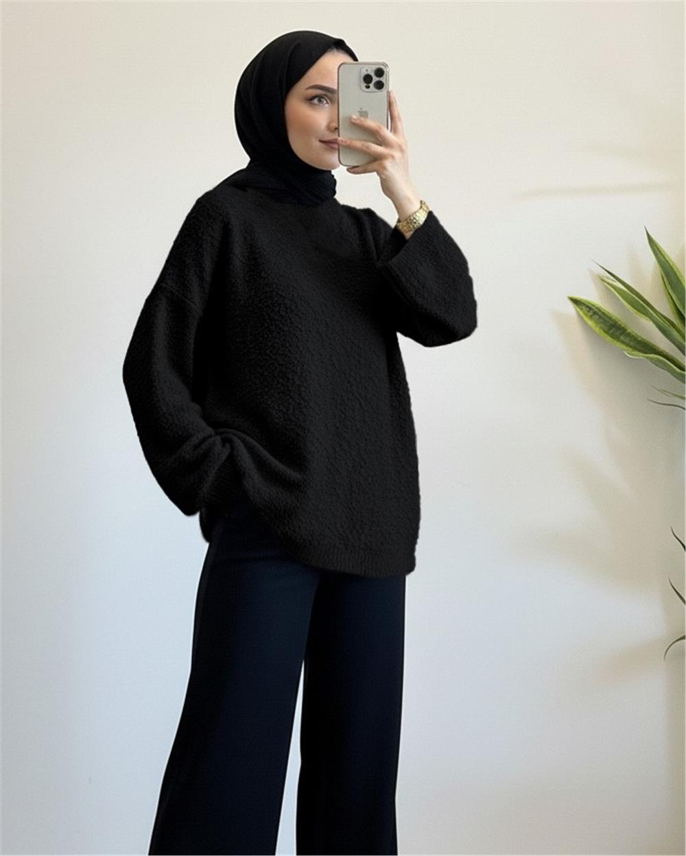 Ponpon Dokulu Salaş Triko Kazak -Siyah (385-3505-R01)