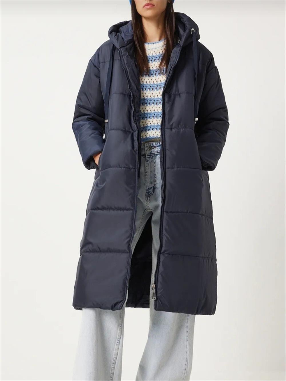 Sabit Kapşonlu Kuş Gözü Detaylı Uzun Kaban -Laci (138-5120-R03)