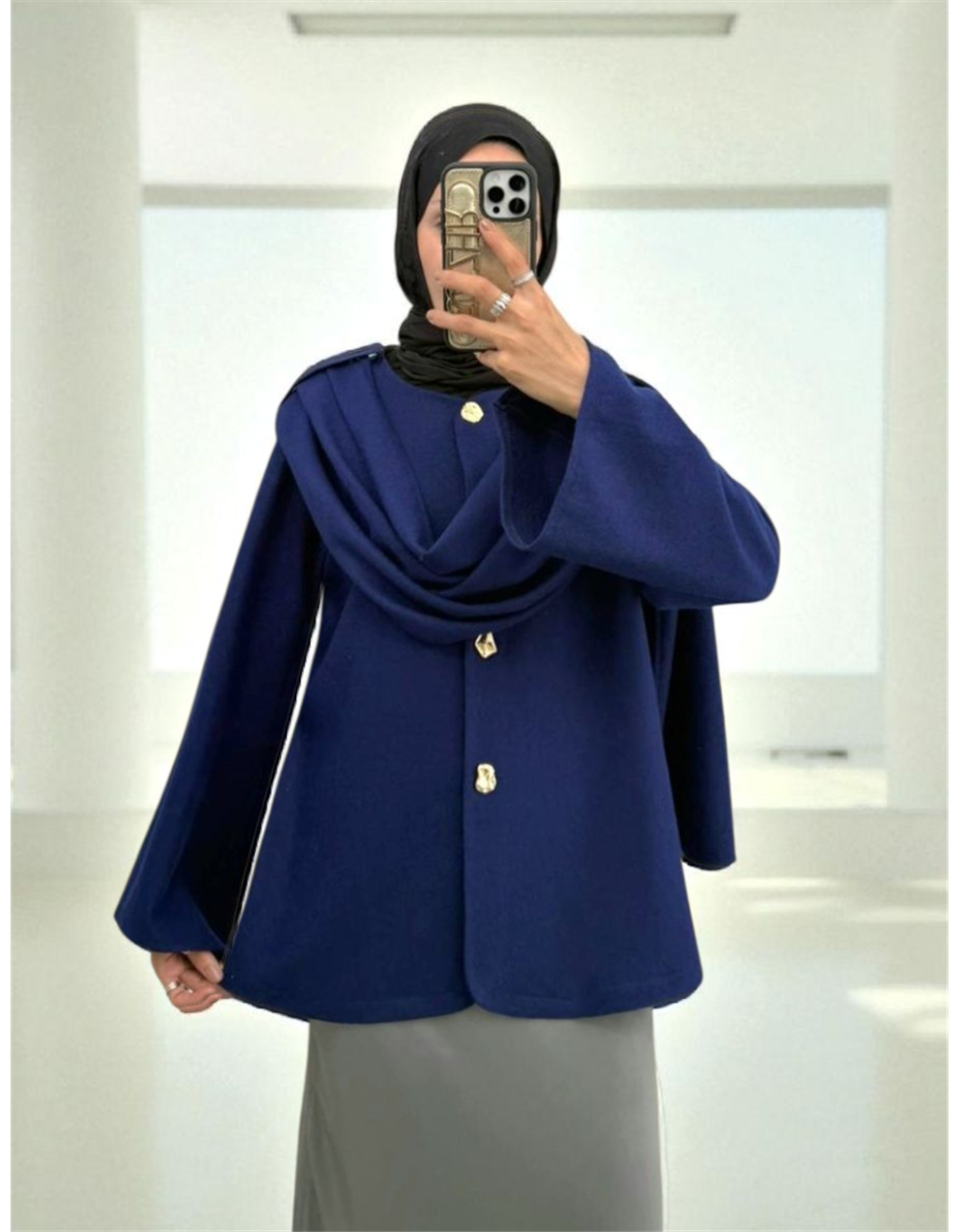 Şal Detaylı Kışlık Keçe Ceket -Laci (307-0025-R03)