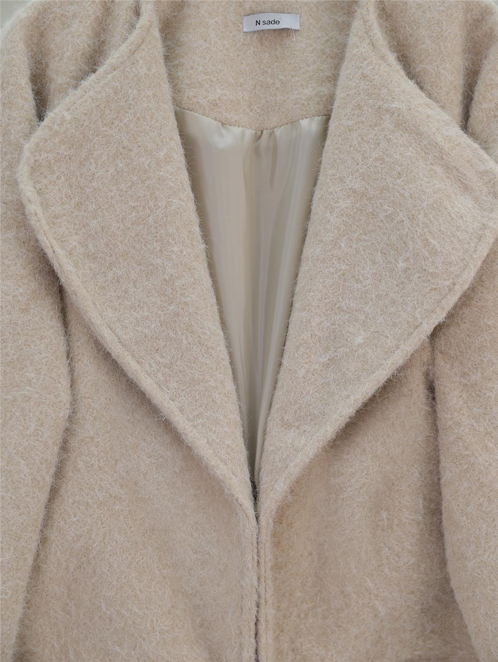 Şal Yaka Astarlı Cepli Buklet Ceket -Krem (223-3028-R28)