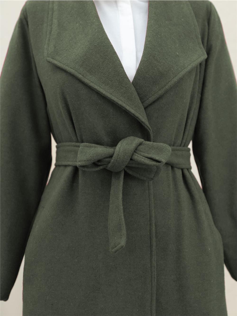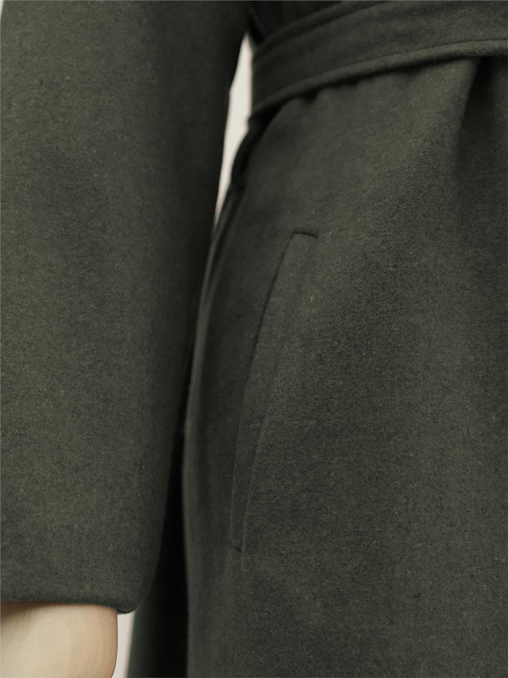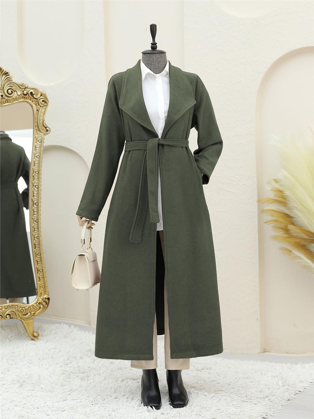 Şal Yaka Cepli Kuşaklı Kaşe Kaban -Haki (111-50735-R05)