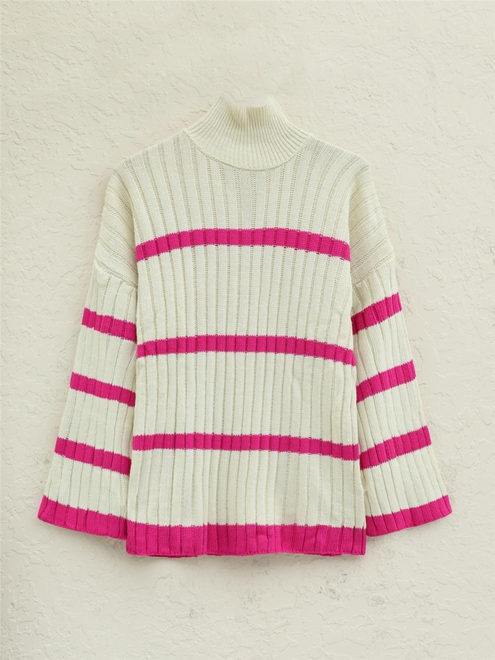 Salaş Kollu Çizgili Triko Kazak -Ekru (385-2751-R07)