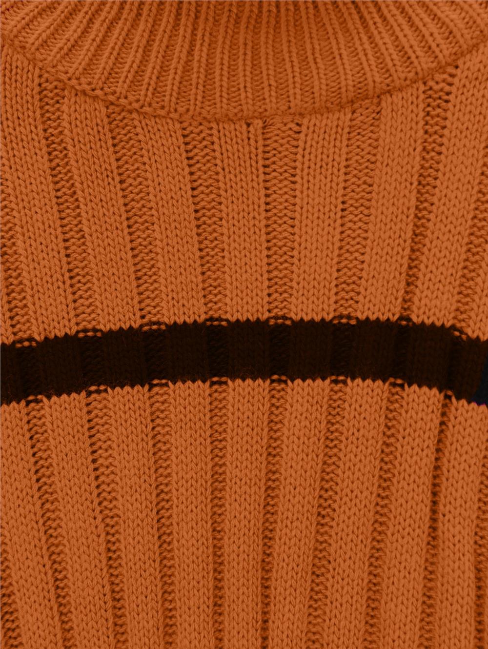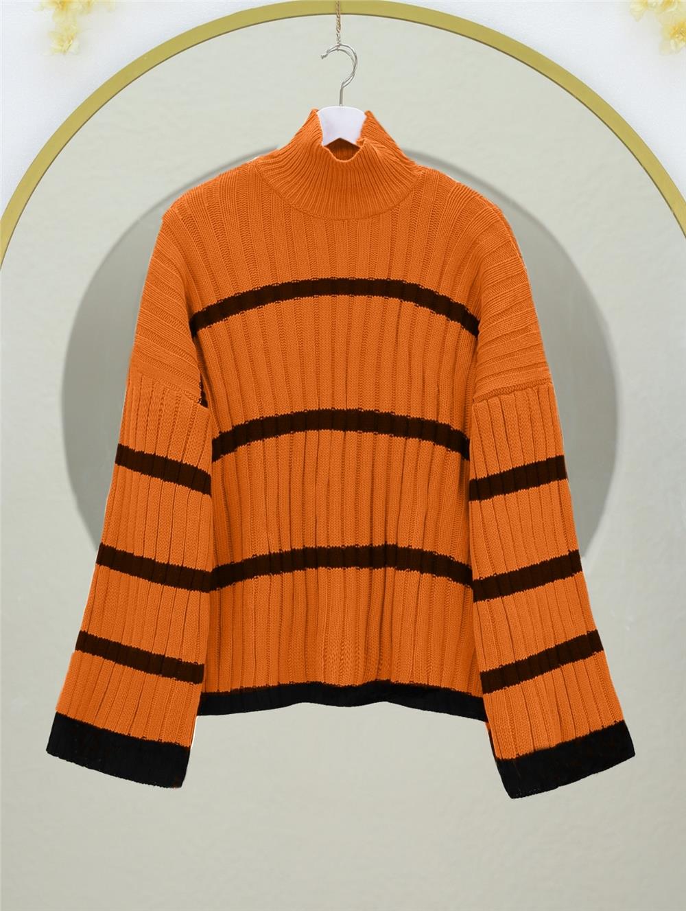 Salaş Kollu Çizgili Triko Kazak -Turuncu (385-2751-R16)