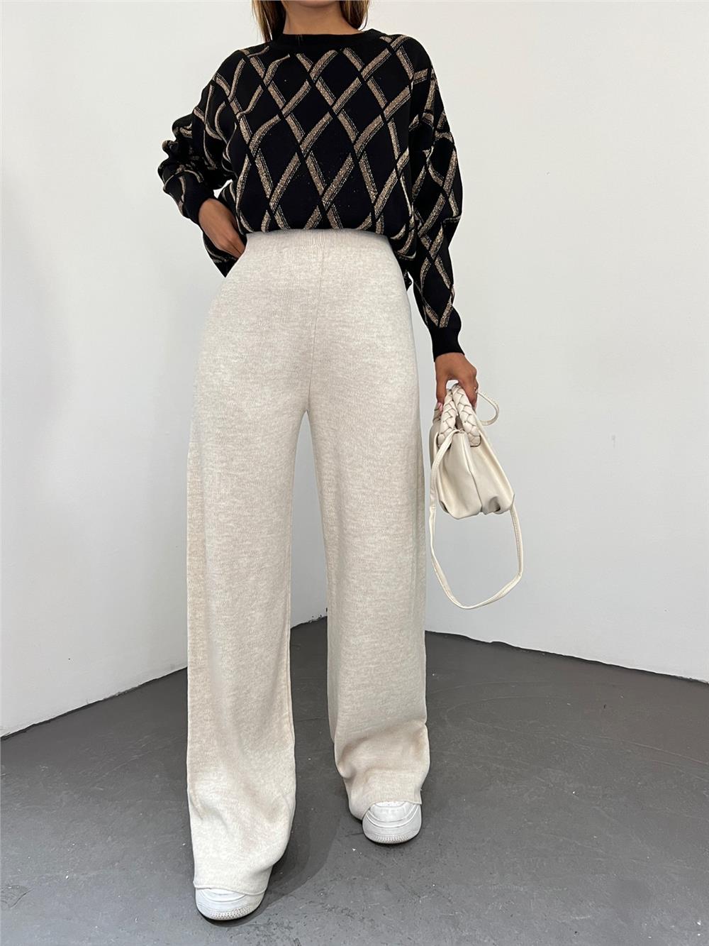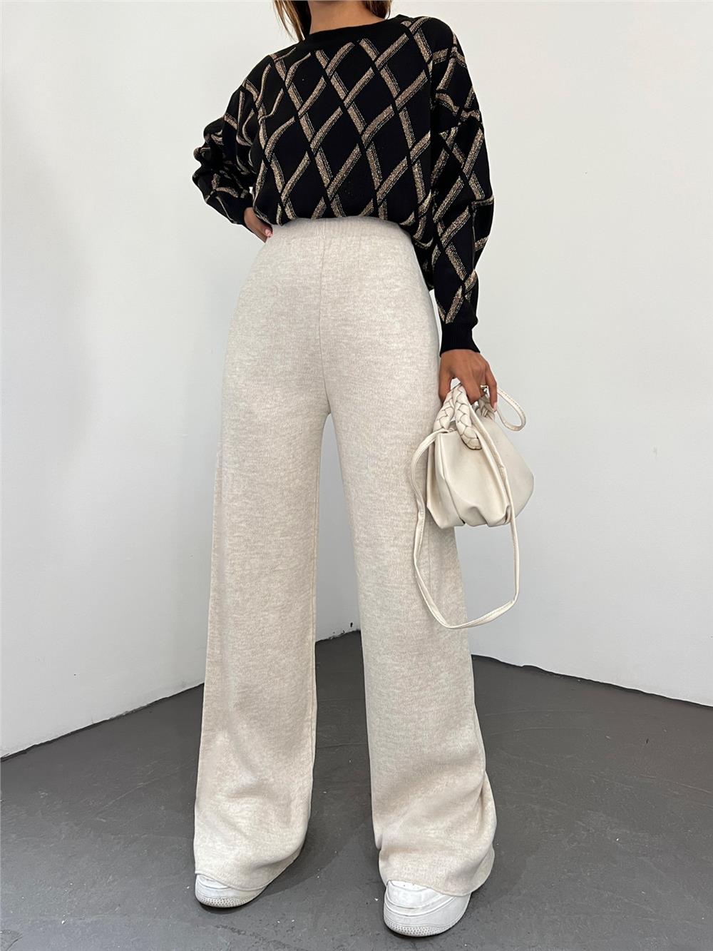 Salaş Triko Pantolon -Krem (295-2126-R28)