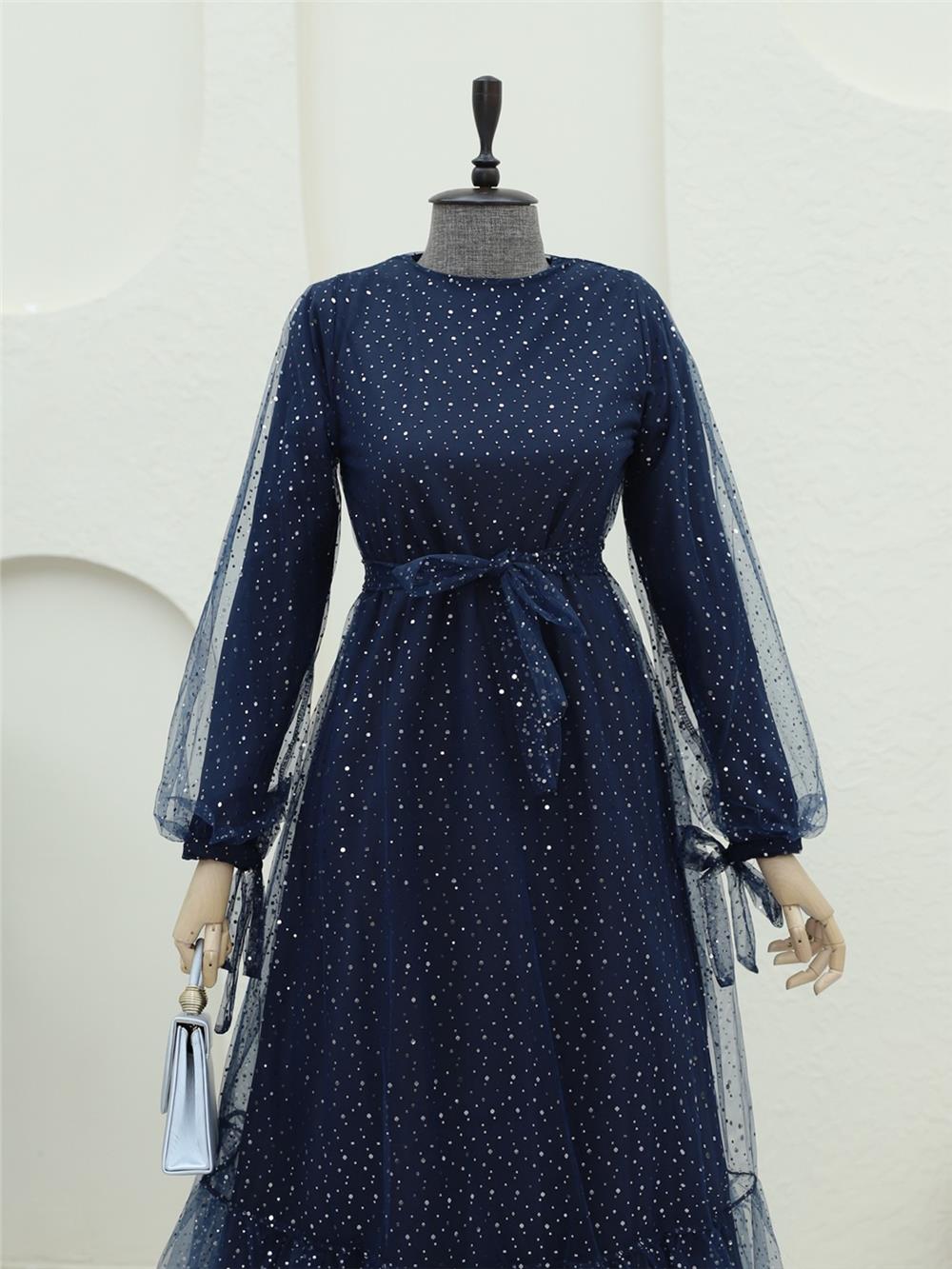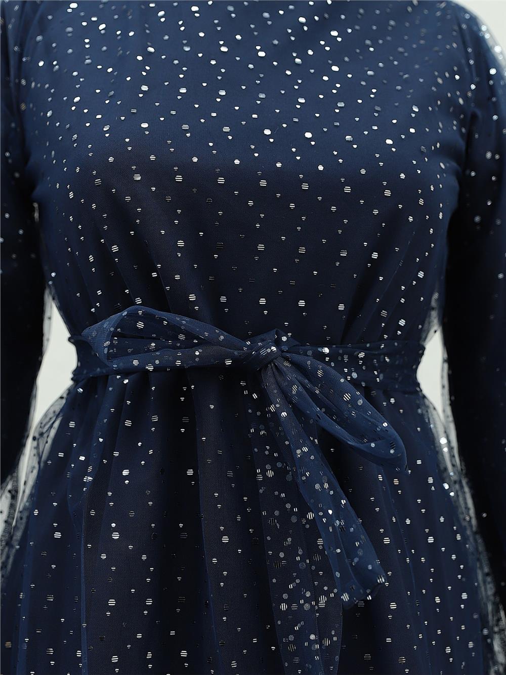 Serpme Pul Detaylı Kolu Bağcıklı Tül Elbise -Laci (118-2319-R03)