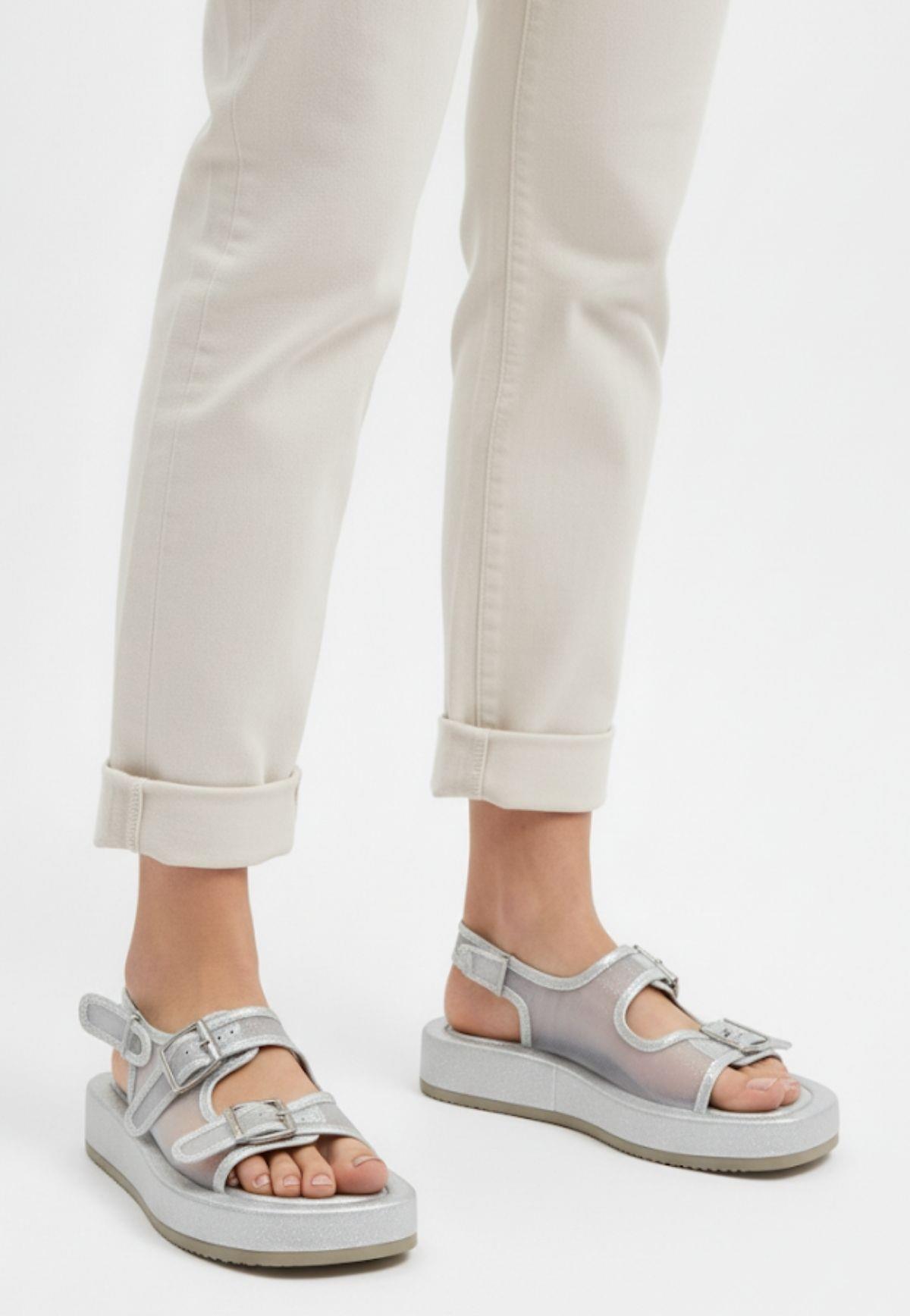 Sinna Gümüş Cilt Tül Detaylı Sandalet (BİA-KDN-KST-265897)